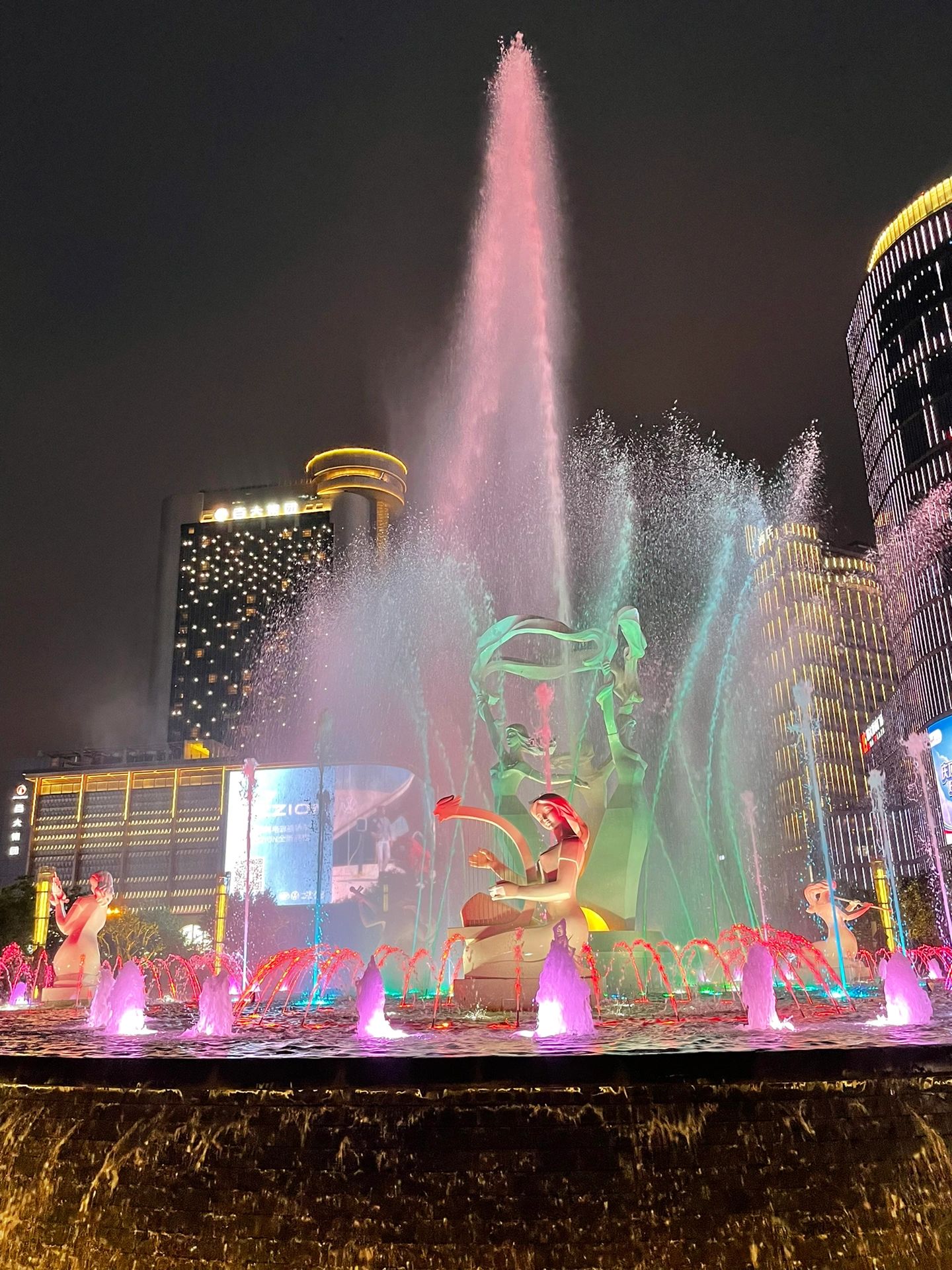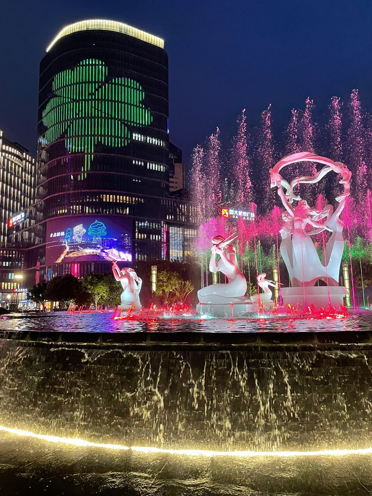 钱江新城灯光秀和喷泉⛲️回归啦,阔别三年的武林广场的音乐喷泉也来啦!