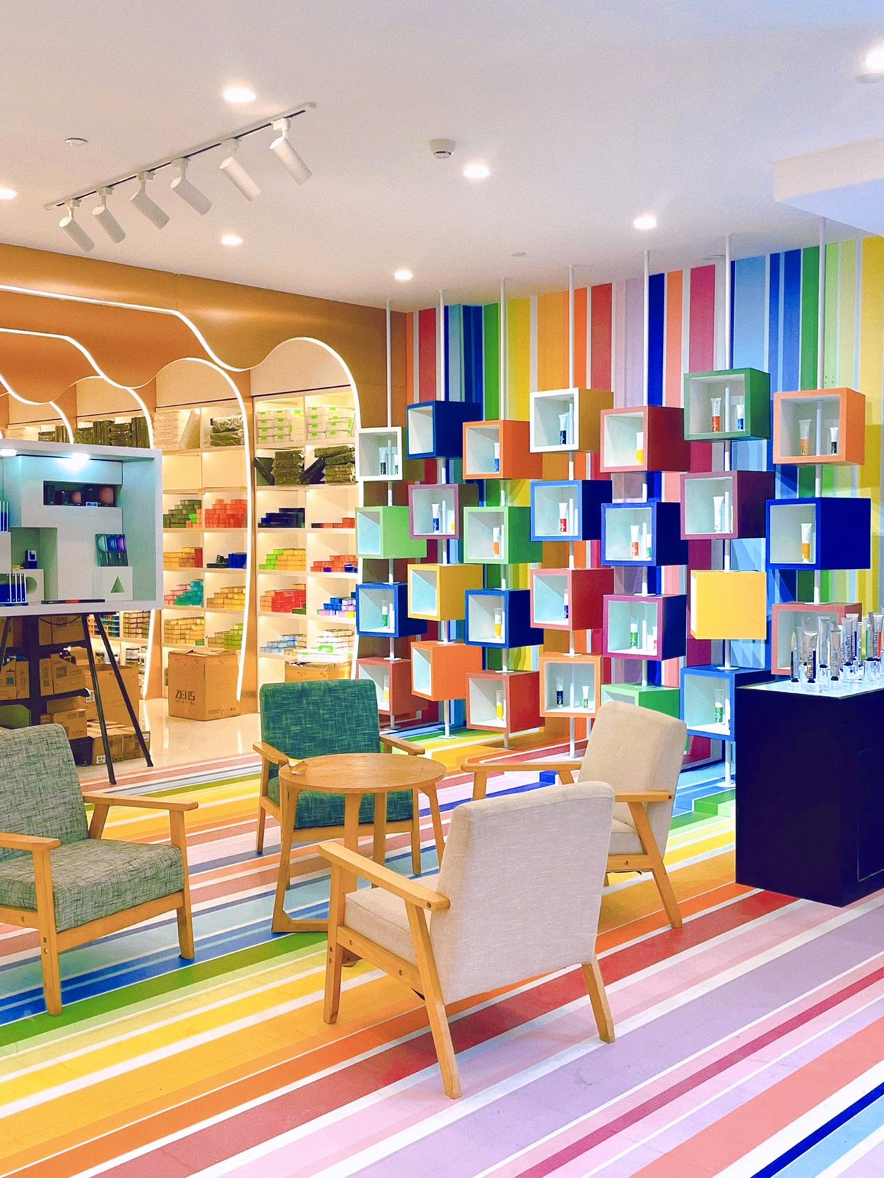 👒与众不同的新品陈列方式让人眼前一亮,七彩布置简直是视觉享受呀!拍照也是绝绝子上镜哦👑~