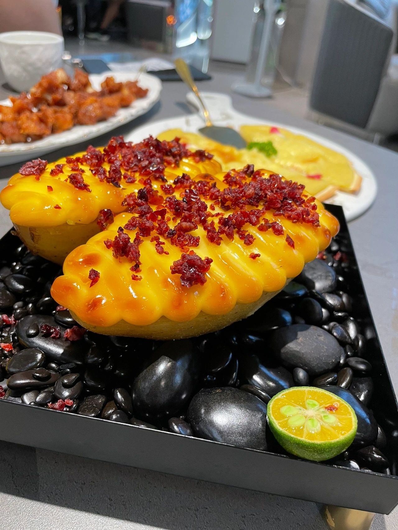 芝士土豆的颜值真是惊到我了,芝士和土豆🥔完美融合,混在其中的蟹籽点亮了整道小吃。