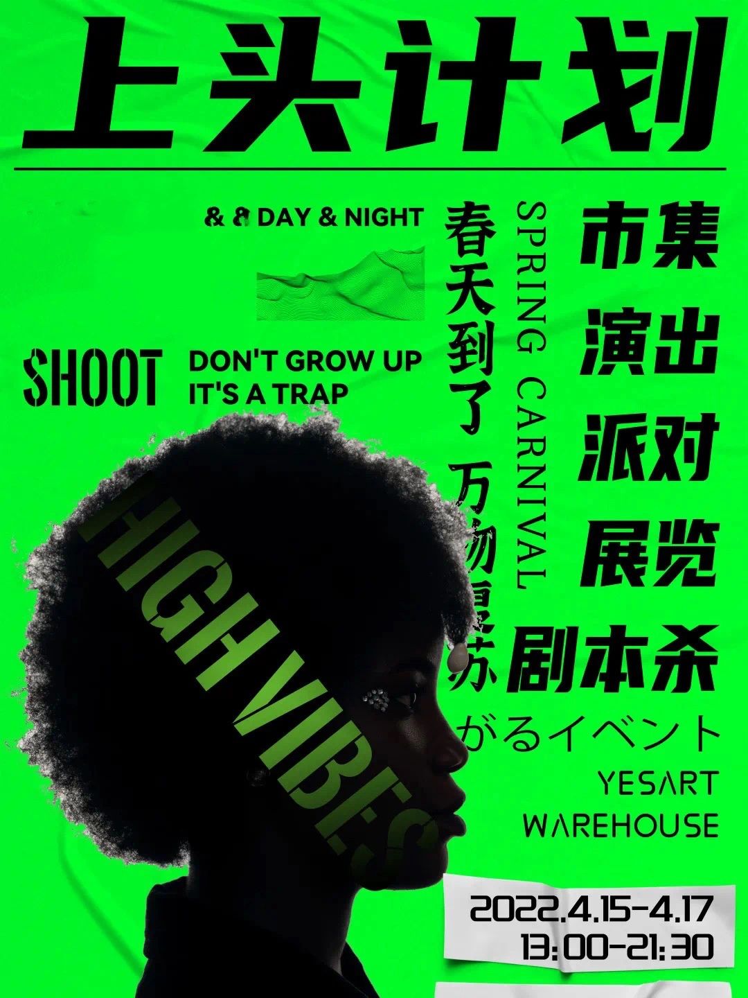 上头计划是一场拥有派对、表演、市集、展览、沉浸式剧本杀等创意内容的嘉年华。