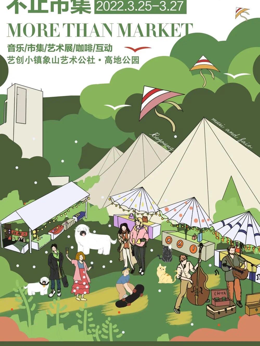 艺术市集+艺术展览+露营体验+草坪音乐+潮流派对