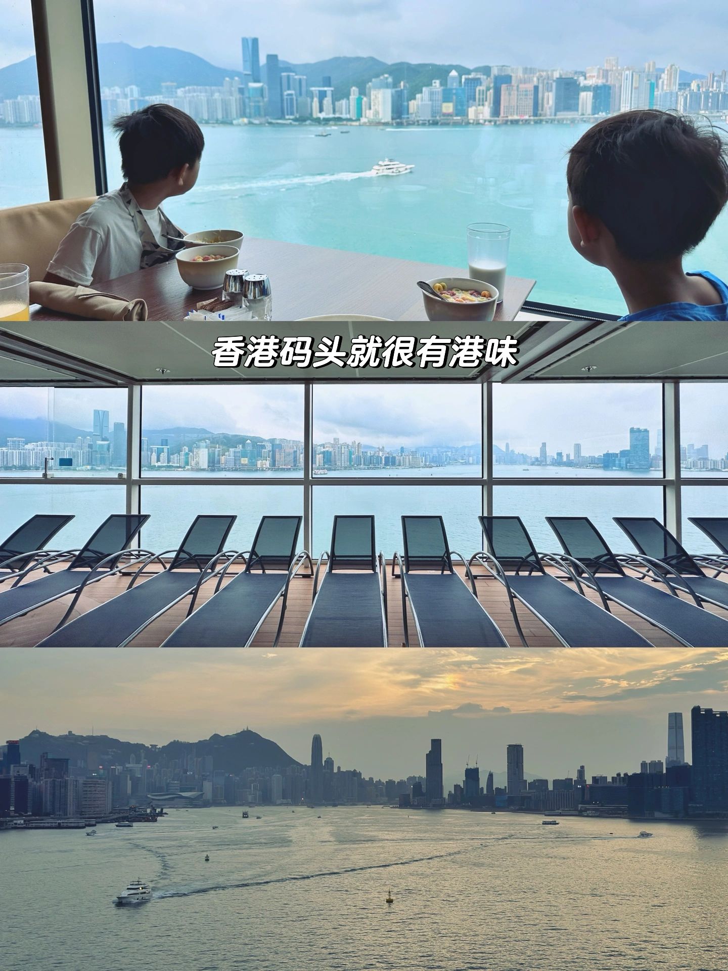 启德邮轮码头本身就有“一看就很香港”的海景,启航时正值日落时分超美。