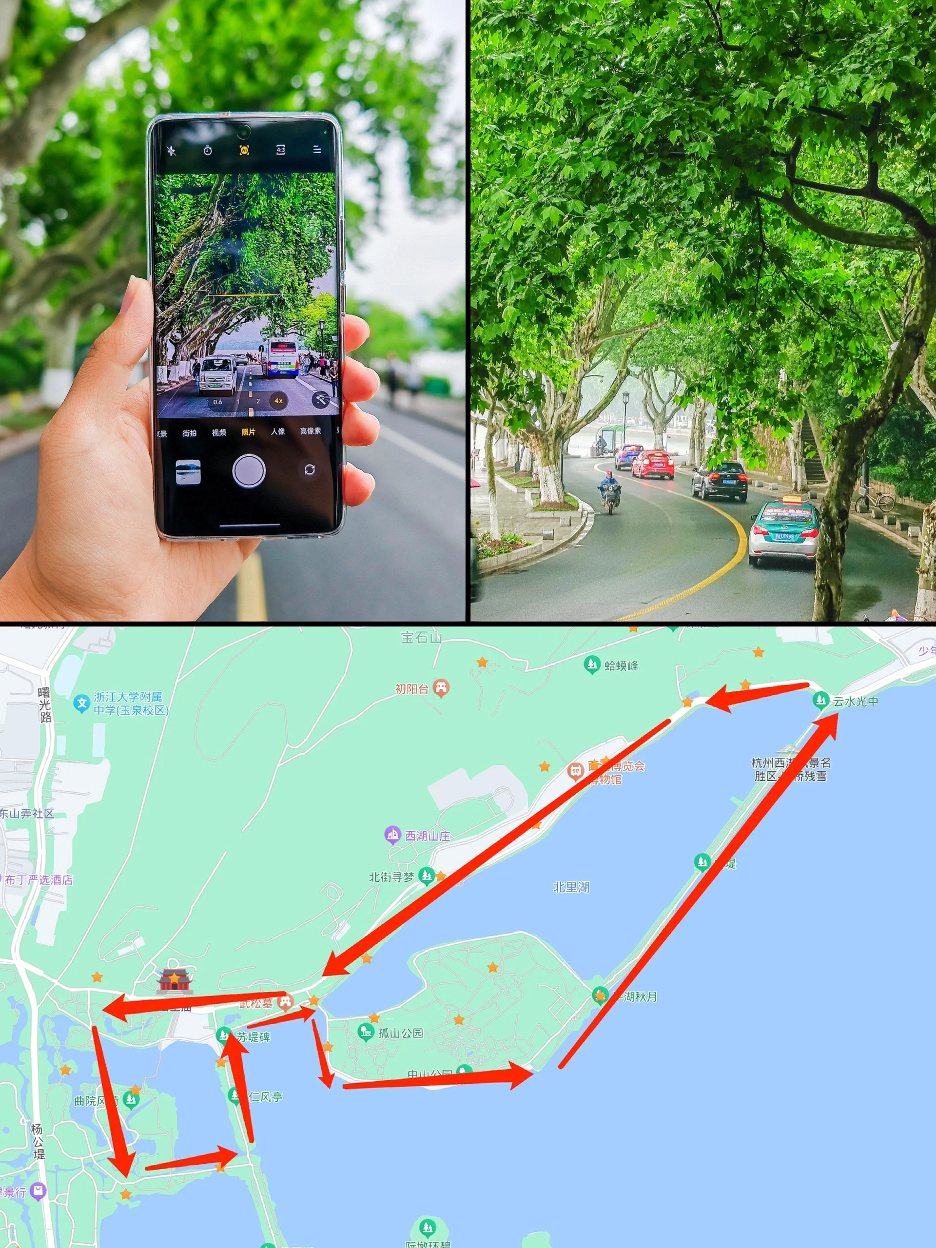 1.北山街游玩可以走一个环线 断桥 ➡️ 北山街 ➡️ 曲院风荷 ➡️ 孤山 ➡️ 白堤 ➡️ 回到断桥 全程6公里;北山街上可以骑车、曲院风荷