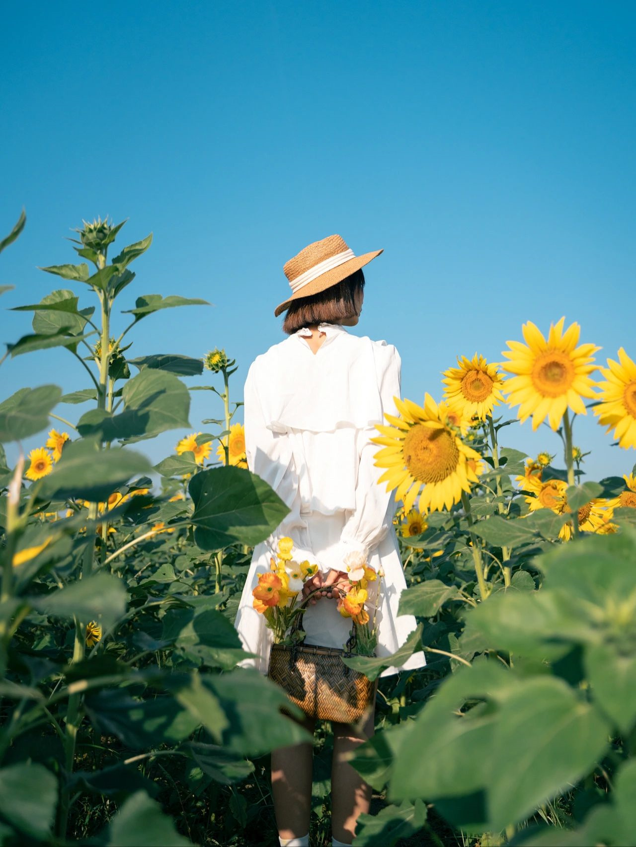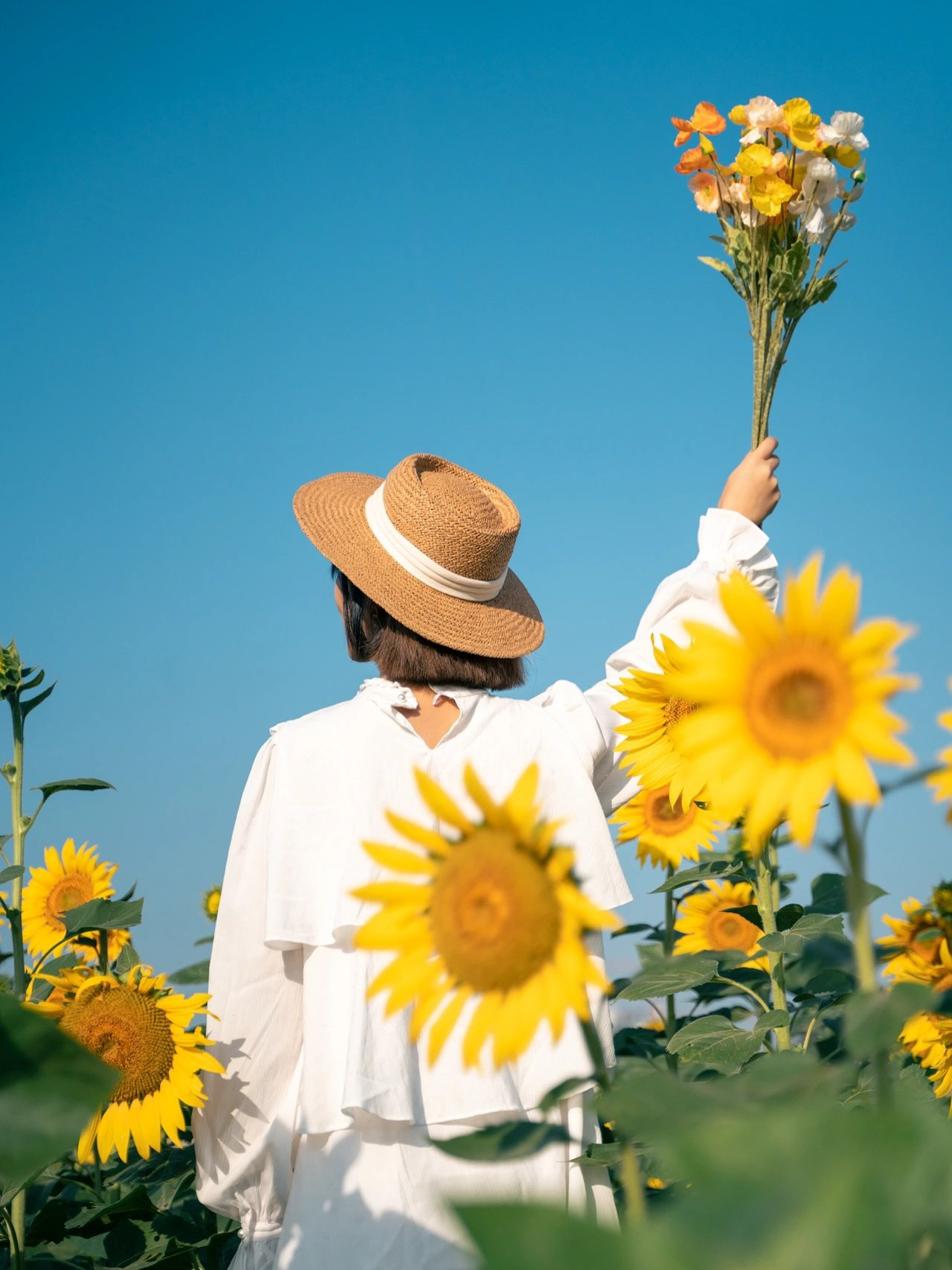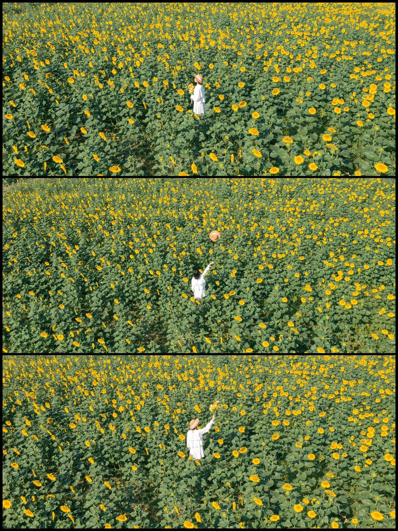 3高角度拍摄,航拍或者自带梯子,满屏都是向日葵,如图5-7