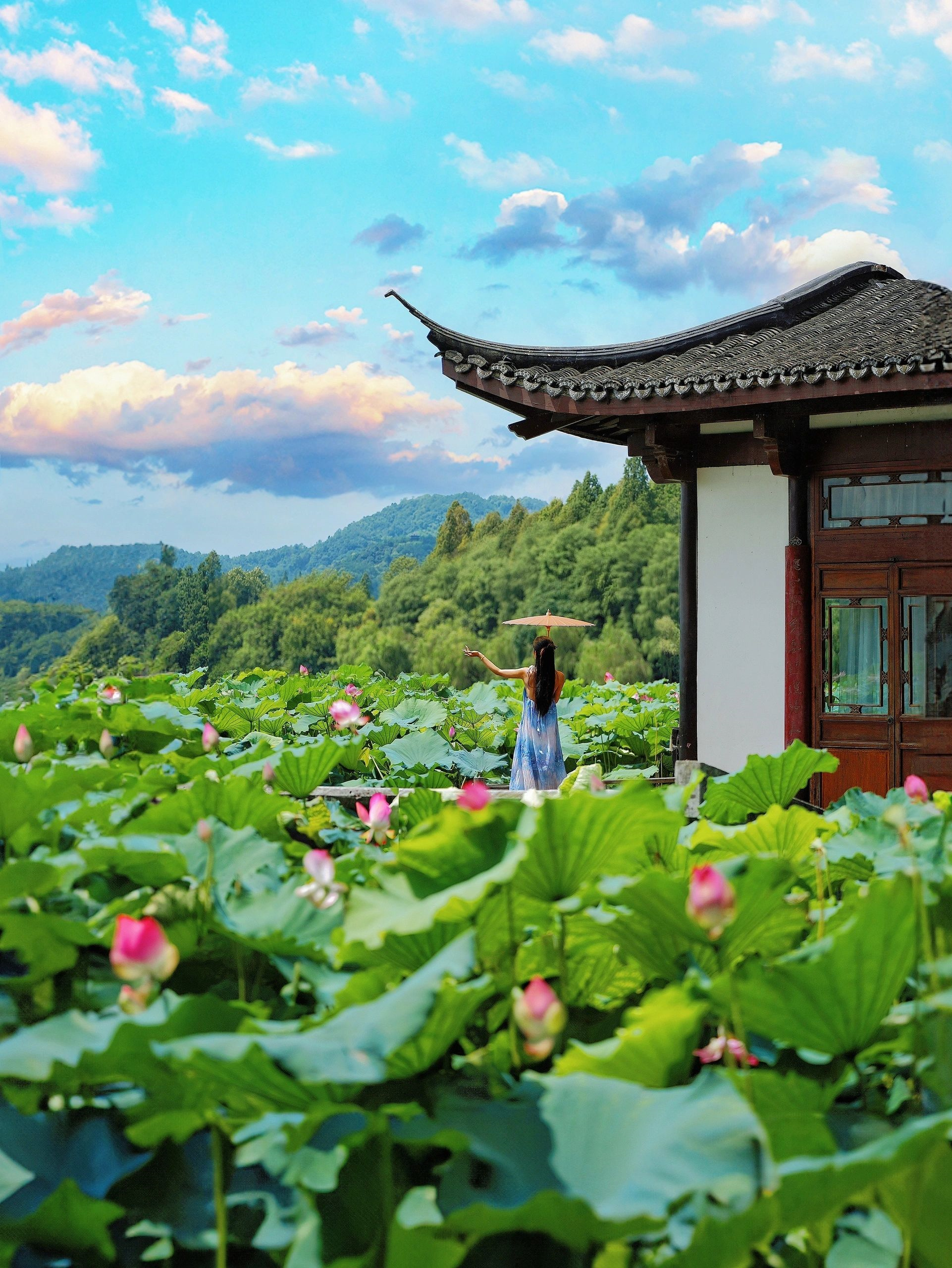 5️⃣郭庄步行5分钟前往【曲院风荷】,曲苑风荷可以导航 湛碧楼 拍荷花大片
