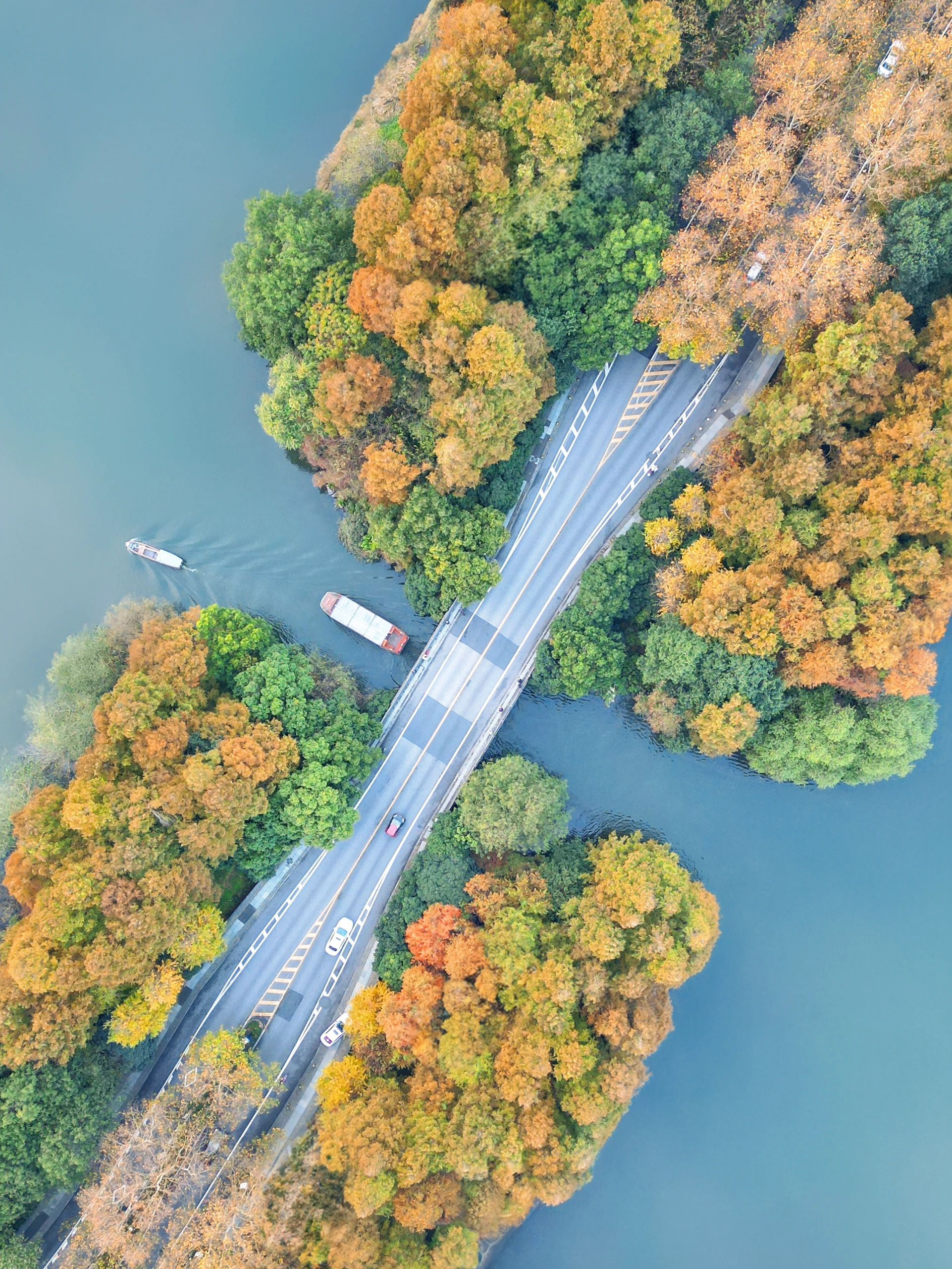 秋天的茅家埠,就像是被打翻的颜料盘,到处都是五颜六色的场景,还有被吹落的银杏叶铺满了整条大道,杭州秋天必打卡的一个地方。