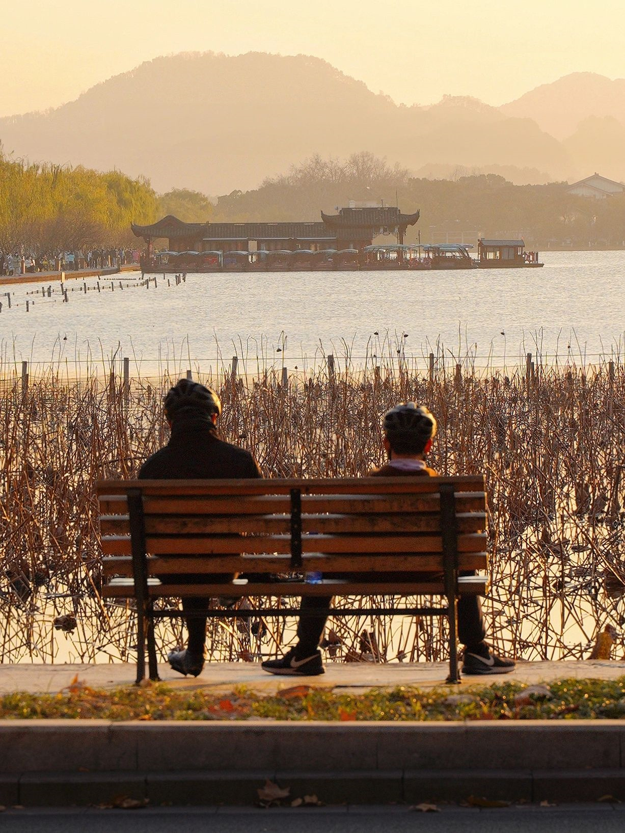 秋天的西泠桥可以直接封神!!金黄色的梧桐遍布道路两侧,路的尽头是金色的湖面,来这你可以感受到什么叫做浪漫至极!