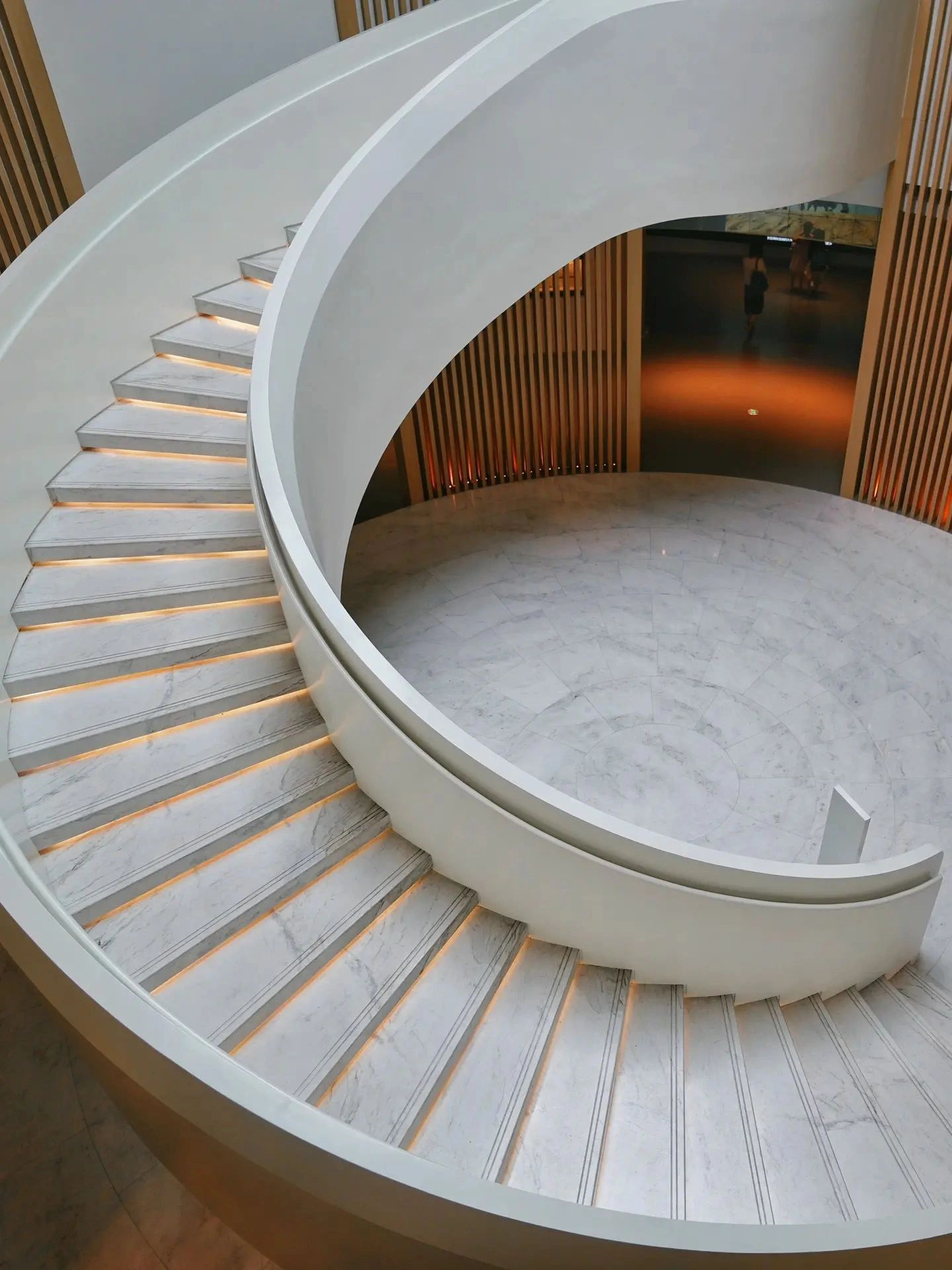 藏于西湖景区中,中式园林的建筑风格,最大的特色是馆内的白色旋转楼梯,真的很出片,俯拍视角很绝。