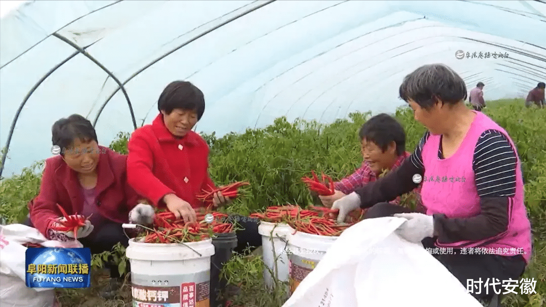 阜南县会龙镇农业农村规划建设服务中心高级农艺师李春田介绍,目前全镇复种辣椒达7万亩,年产量15万吨,产品畅销全国60多个大中城市,年交易额达10亿元,带动1.2万农户在家门口就业增收。