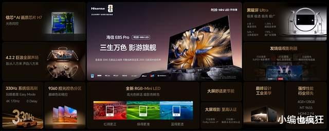 同场发布的“影游旗舰”海信E8S Pro专为追求极致体验的影游玩家打造,“王炸双芯”与黑曜屏Ultra双重加持,9360控光控色分区,实现巅峰色彩精控。海信E8S Pro支持行业最高的4K 170Hz原生刷新率和行业最强0 delay背光技术,动态场景表现出色。同时,海信E8S Pro将行业首发Super电影模式、支持炫彩刮削海报墙和游戏定制模式,是影游玩家的必入装备。