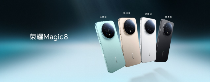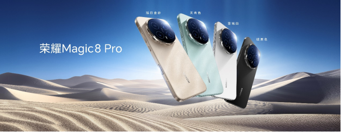 荣耀Magic8系列已于2025年10月15日正式发布,并在10月23日在荣耀官方渠道及合作平台启售。荣耀Magic8标准版配备旭日金、天青釉、雪域白、绒黑色,售价4499元起;荣耀Magic8 Pro配备旭日金砂、天青色、雪域白、绒黑色,售价5699元起。