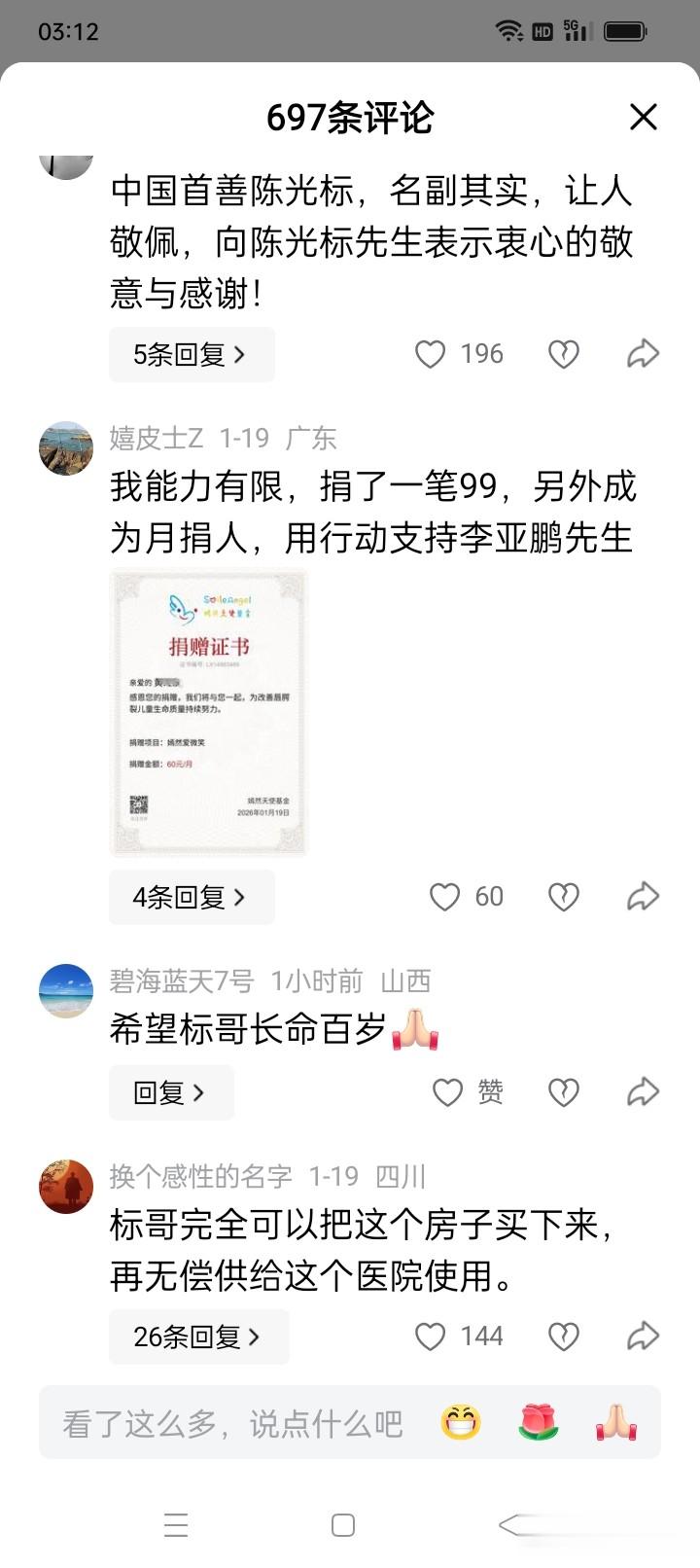 此外,陈光标还提议由李亚鹏邀请前妻王菲举办慈善演唱会,自己承担全部出场费,演唱会收入捐赠医院。尽管这一提议因涉及私人关系被质疑“道德绑架”,但侧面反映出其整合资源、扩大影响力的慈善思维。