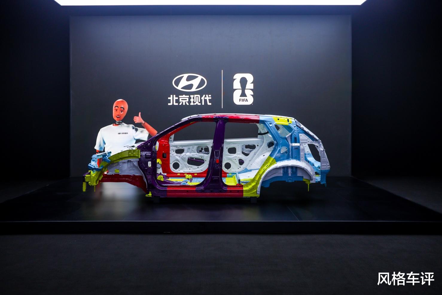 在被动安全方面,EO羿欧采用“用料+结构”并行的设计思路。车身采用“720°铠甲车身结构”,整车高强钢占比约77.5%,A/B柱大量使用1500MPa热成型钢;前机舱位置使用了独特的大断面设计,将碰撞能量导向两侧更坚固的纵梁。北京现代把它称作“神之手”梁结构,就像有只无形的手,关键时刻把危险推开,护住车内驾乘者。