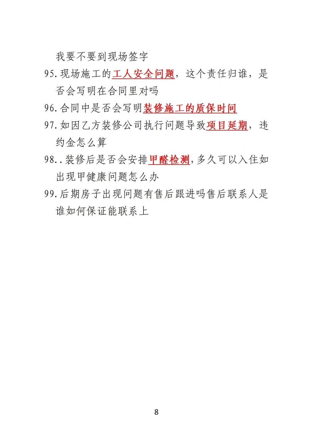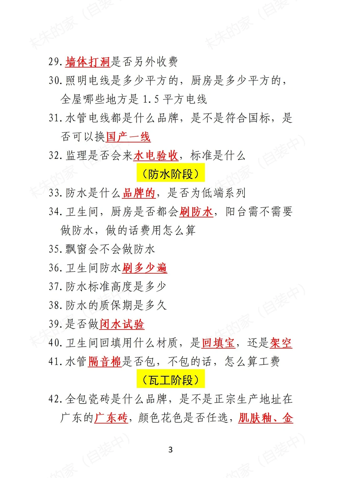 二是施工后,从设计、拆改、水电、防水、瓦工、木工、油工、安装等8个阶段,条目式列出需要注意问题