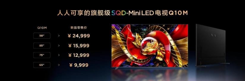 旗舰级普惠:Q10M让巅峰画质零门槛 如果说Q10M Pro是超旗舰体验的代名词,那么Q10M则是“人人可享的旗舰级SQD-Mini LED电视”,以技术普惠的姿态,大幅降低了巅峰画质的体验门槛。作为技术下放的标杆之作,Q10M完全继承了SQD-Mini LED的核心技术,同样搭载超级量子点技术与超级蝶翼华曜屏,实现100% BT.2020全局高色域,色彩纯净度和色准表现丝毫不逊色于同价位竞品,甚至碾压多数高端机型。无论是观看4K电影、播放高清纪录片,还是畅玩大型游戏,Q10M都能精准还原色彩本真,带来身临其境的视觉体验。 在价格上,Q10M更是展现了TCL“真普及”的决心:98吋24999元、85吋15999元、75吋12999元、65吋仅需9999元。这一定价让更多消费者无需高昂预算,就能享受到Mini LED技术的革命性提升,彻底打破了“高端画质=高价格”的行业固有认知。对于追求性价比的家庭用户而言,Q10M无疑是兼顾画质、体验与预算的最优解,让SQD-Mini LED技术真正走进千家万户,实现“巅峰画质人人可享”的初心。