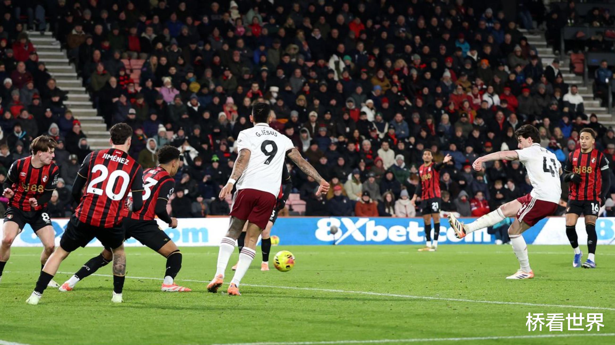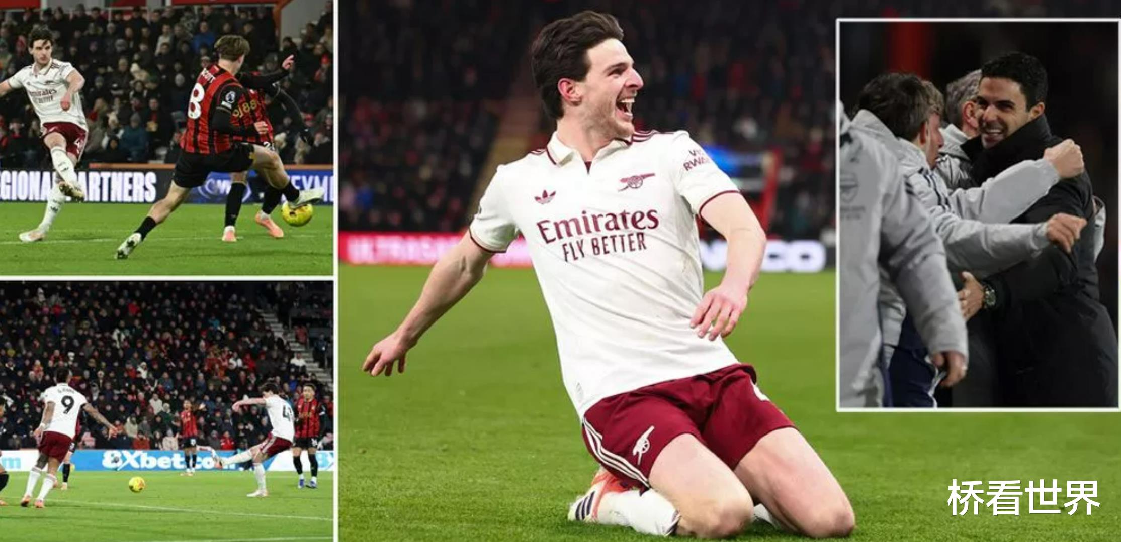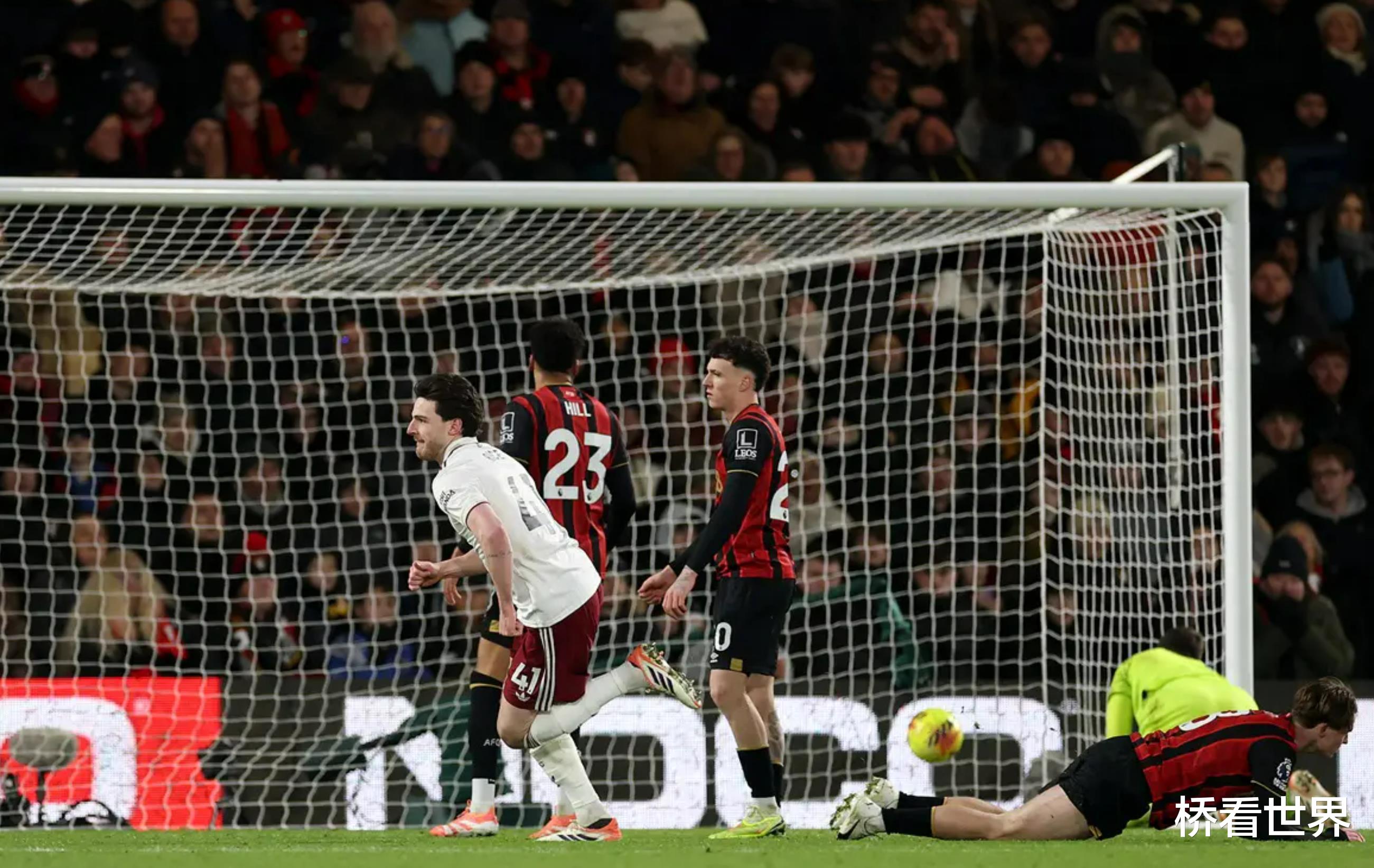 随后,赖斯以标志性的方式,打出一脚精彩的凌空抽射,皮球直钻伯恩茅斯球门。