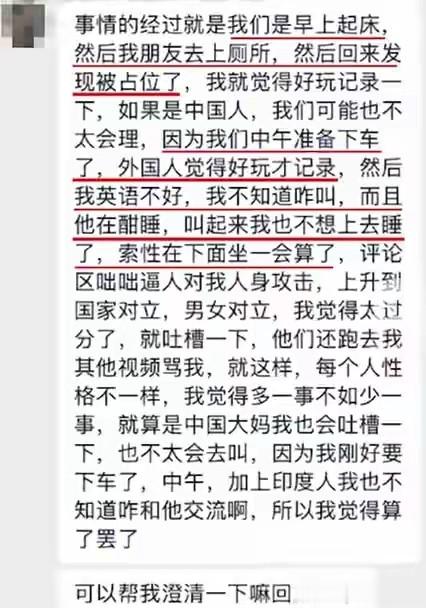 女子自己也解释道,毕竟已经凌晨天亮了,自己觉已经睡醒了,所以她没想过多的追究这件事。没想到视频一经发出,却被网友扭着不放了。