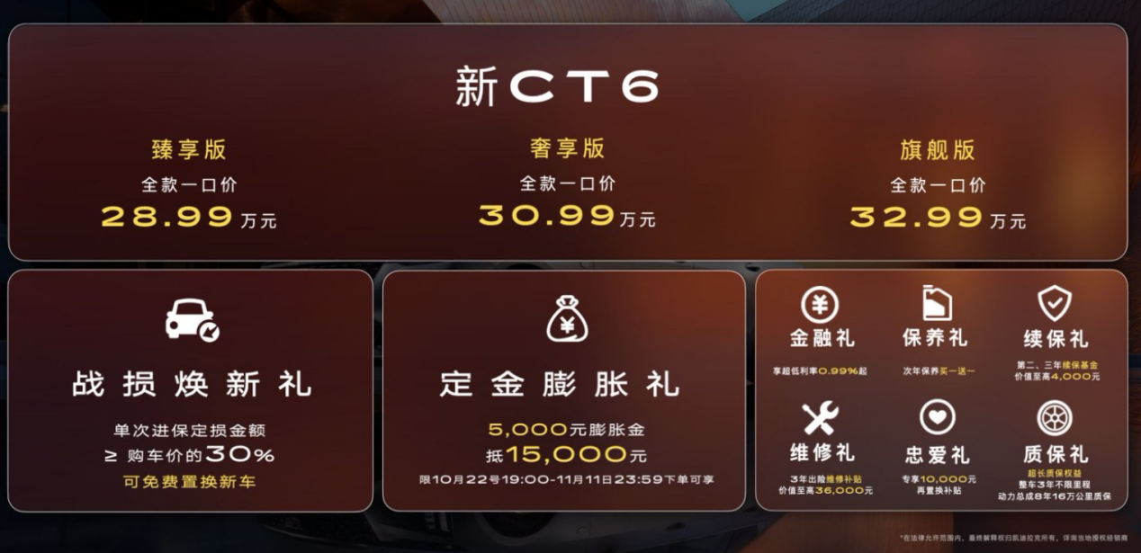 (2025年10月22日)今日,凯迪拉克以创新虚拟现实技术发布百万级磁浮底盘,搭载该底盘的全尺寸旗舰轿车凯迪拉克新CT6也同步正式上市。新CT6优化配置结构,精简为臻享、奢享、旗舰三款车型,配置全面升级,全款一口价28.99万元起。