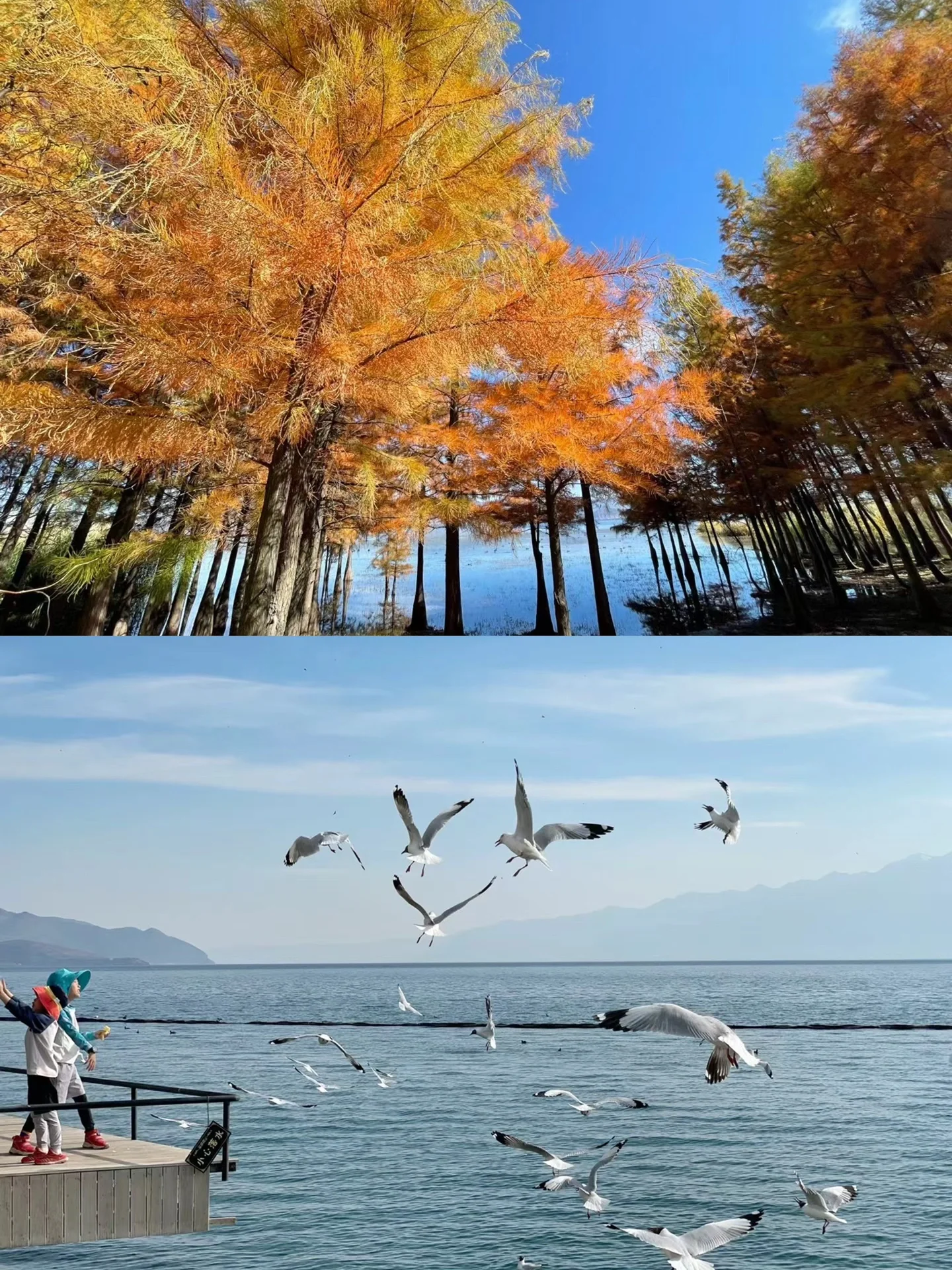 2云南大理:生长在洱海中的红杉、摇曳在稻田边的蒲苇、映着古城门闪闪发光的银杏…秋天的大理鲜艳得仿佛自带滤镜。红嘴鸥飞回来了,天空晴朗了,大理更让人着迷了。