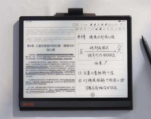 文石推出了BOOX Note X3电子书,首发价格为2599元。 这款电子书的屏幕尺寸为10.3 英寸,分辨率为227 PPI。它采用了新的导光板,所以厚度减薄了40%,前光均匀性提升了12%。让文字显示与眼睛距离更近,字与屏之间没有隔离感。这款电纸书笔记应用内有多种笔刷选择,一支笔可以写出毛笔、钢笔、铅笔、圆珠笔、马克笔等多种字迹效果。 文石BOOX NoteX3搭载安卓12系统,支持AI阅读助手、 AI手写识别以及分屏模式。它的笔记APP支持插入文本、音频、图片、链接等,非常实用。