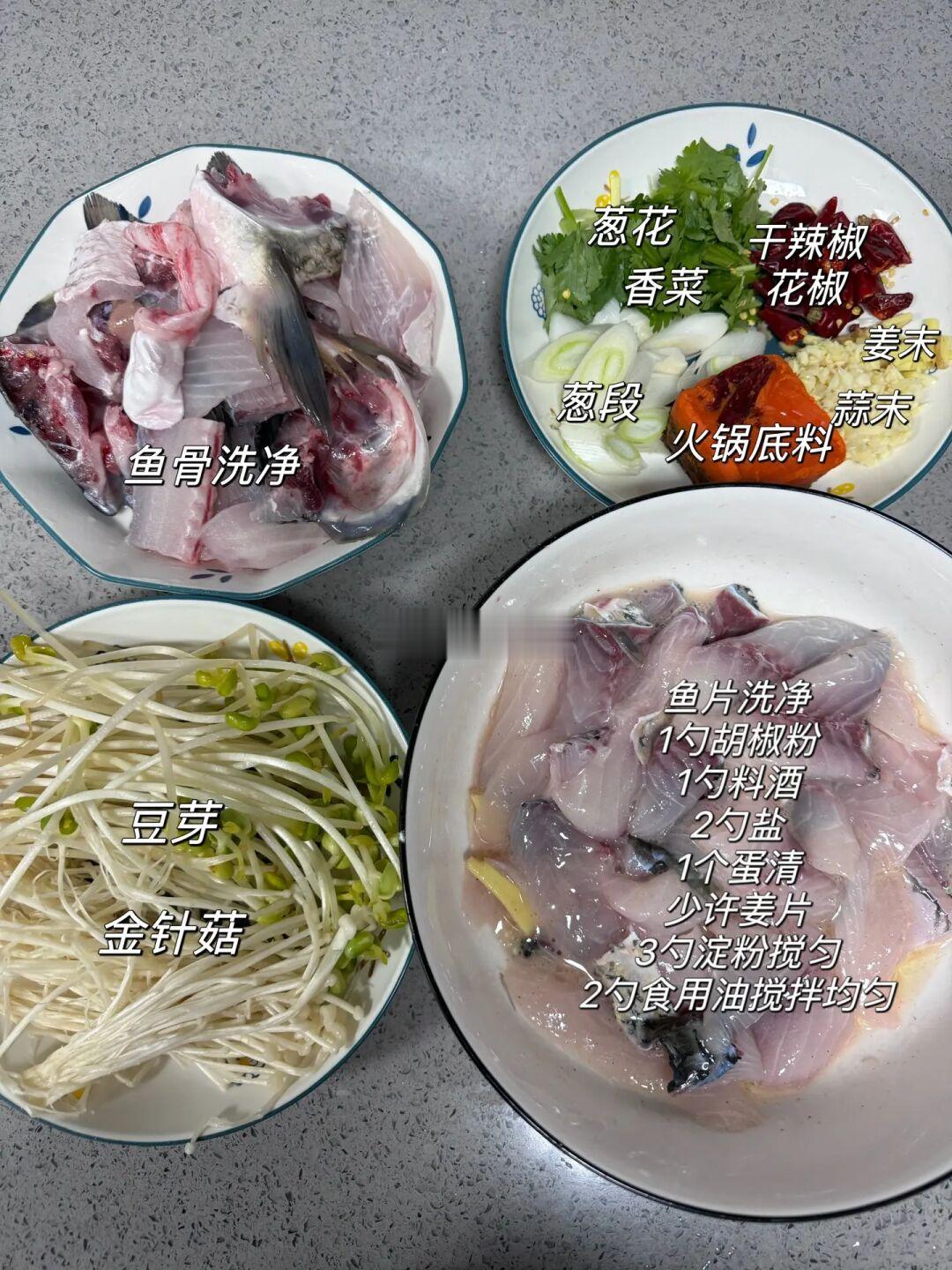 [放大镜R]食材:草鱼 豆芽 金针菇 火锅底料 蒜末 姜末 香菜 葱段 干辣椒 花椒