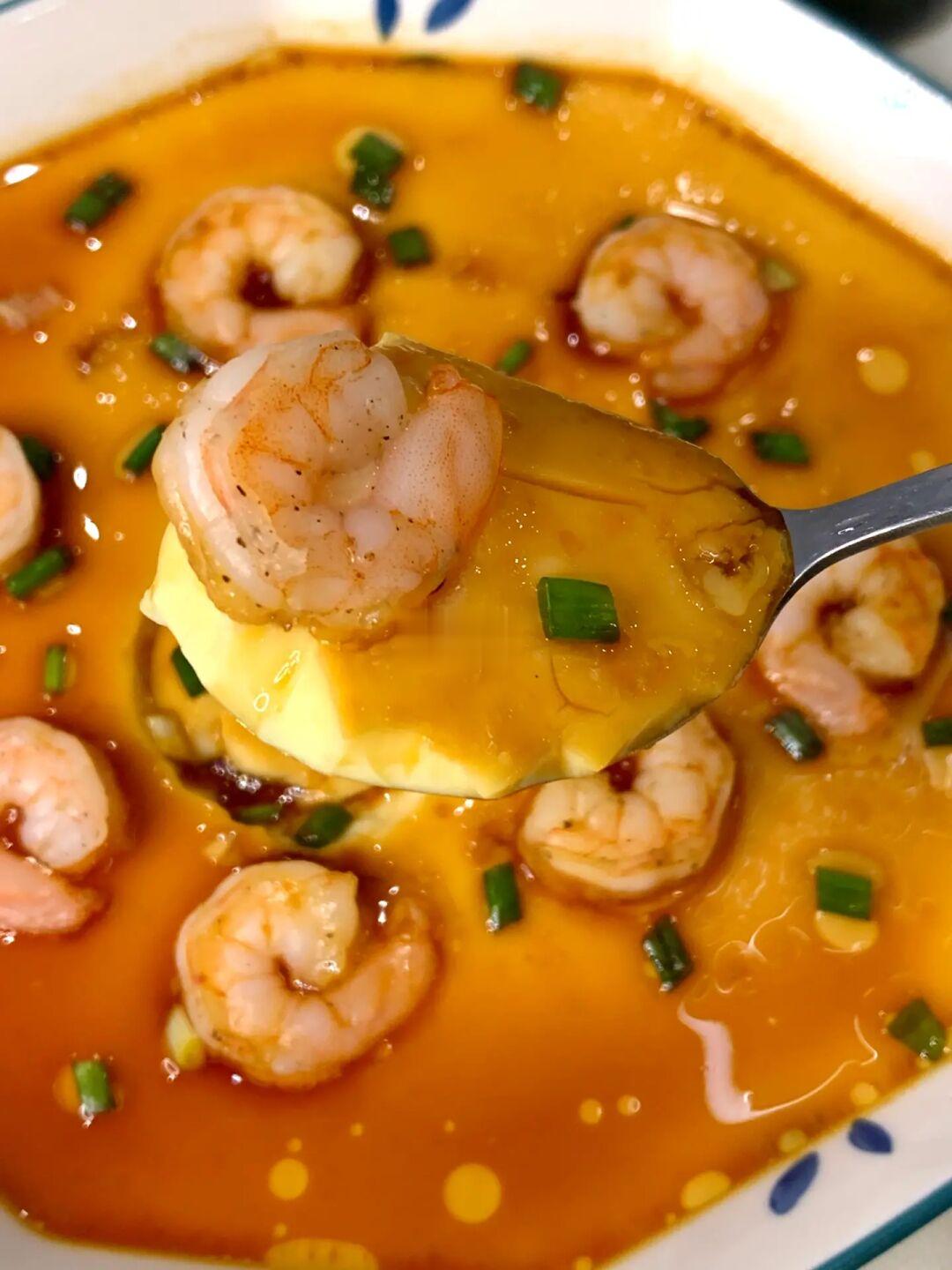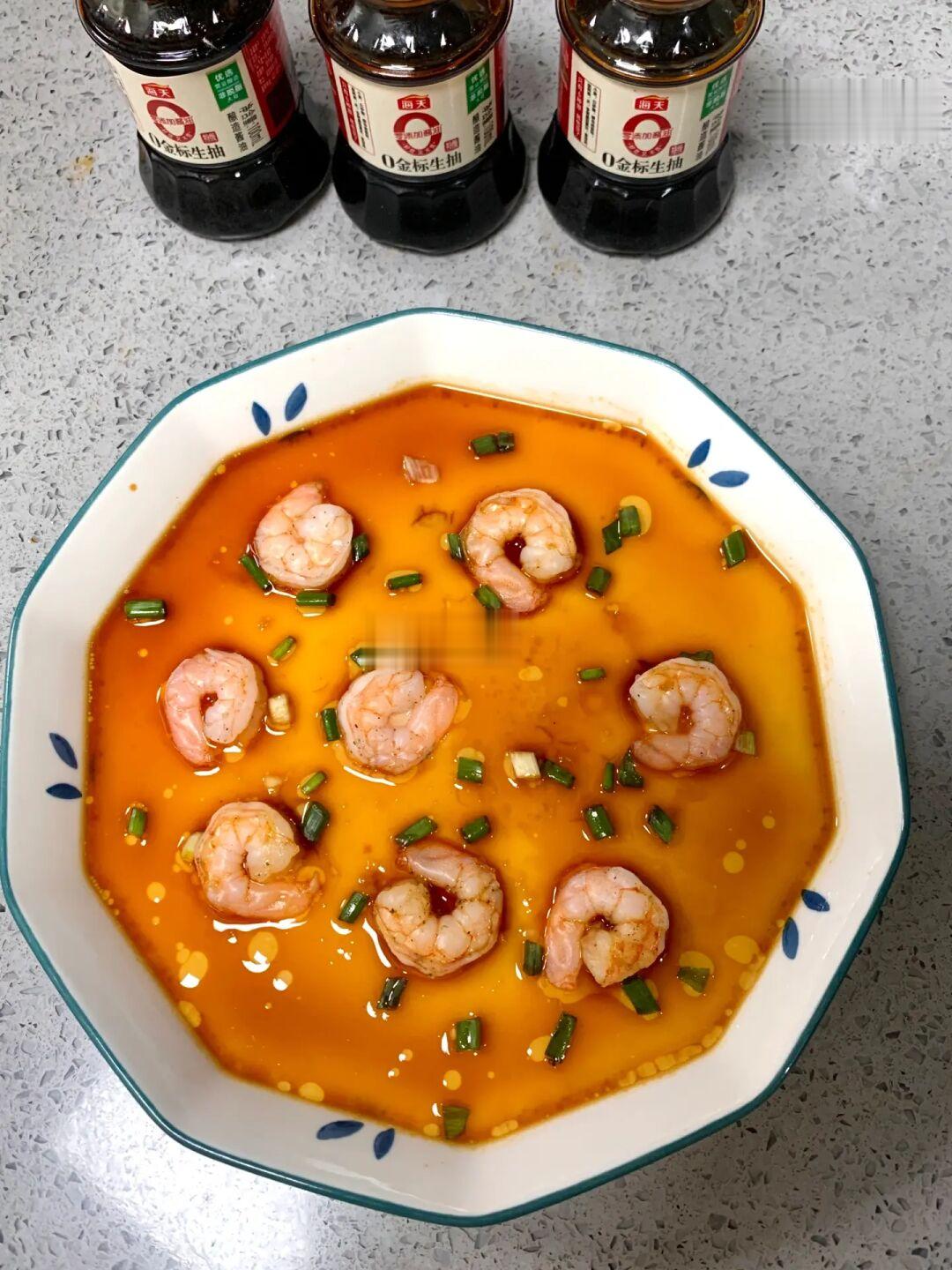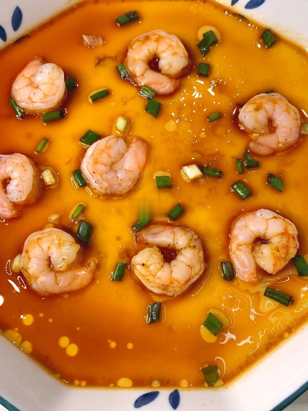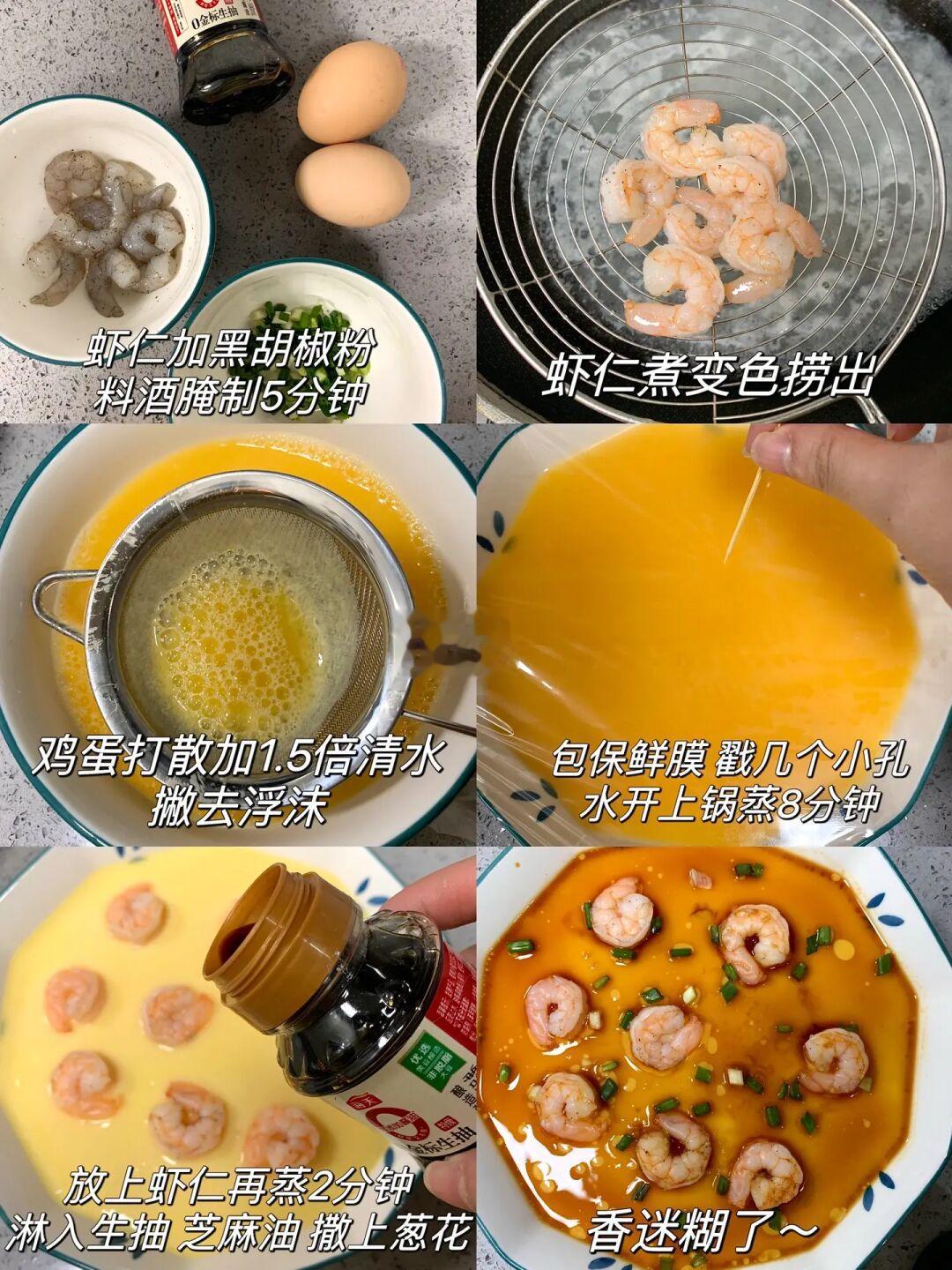 4⃣️放上虾仁再蒸2分钟,淋上生抽、香油、撒上葱花即可