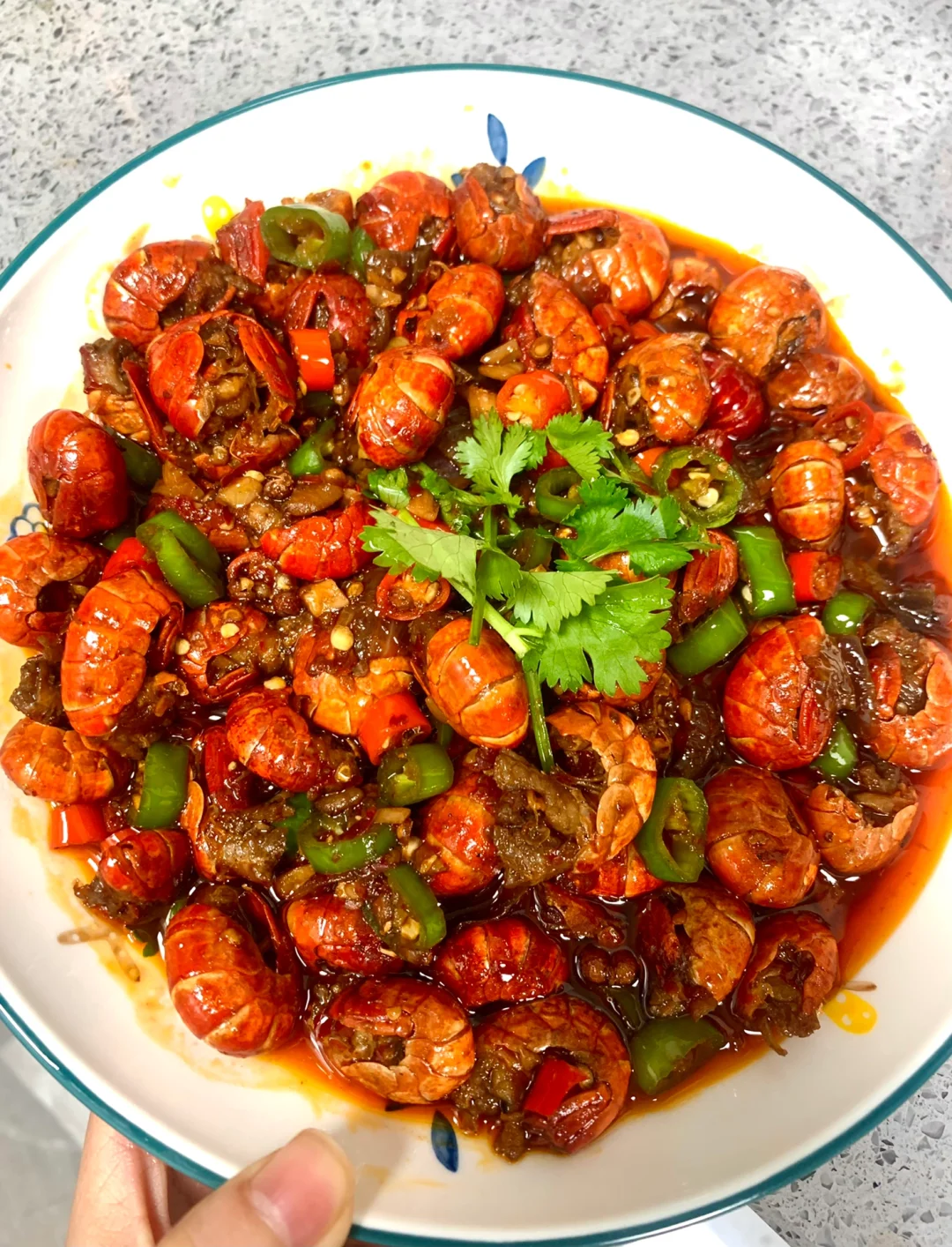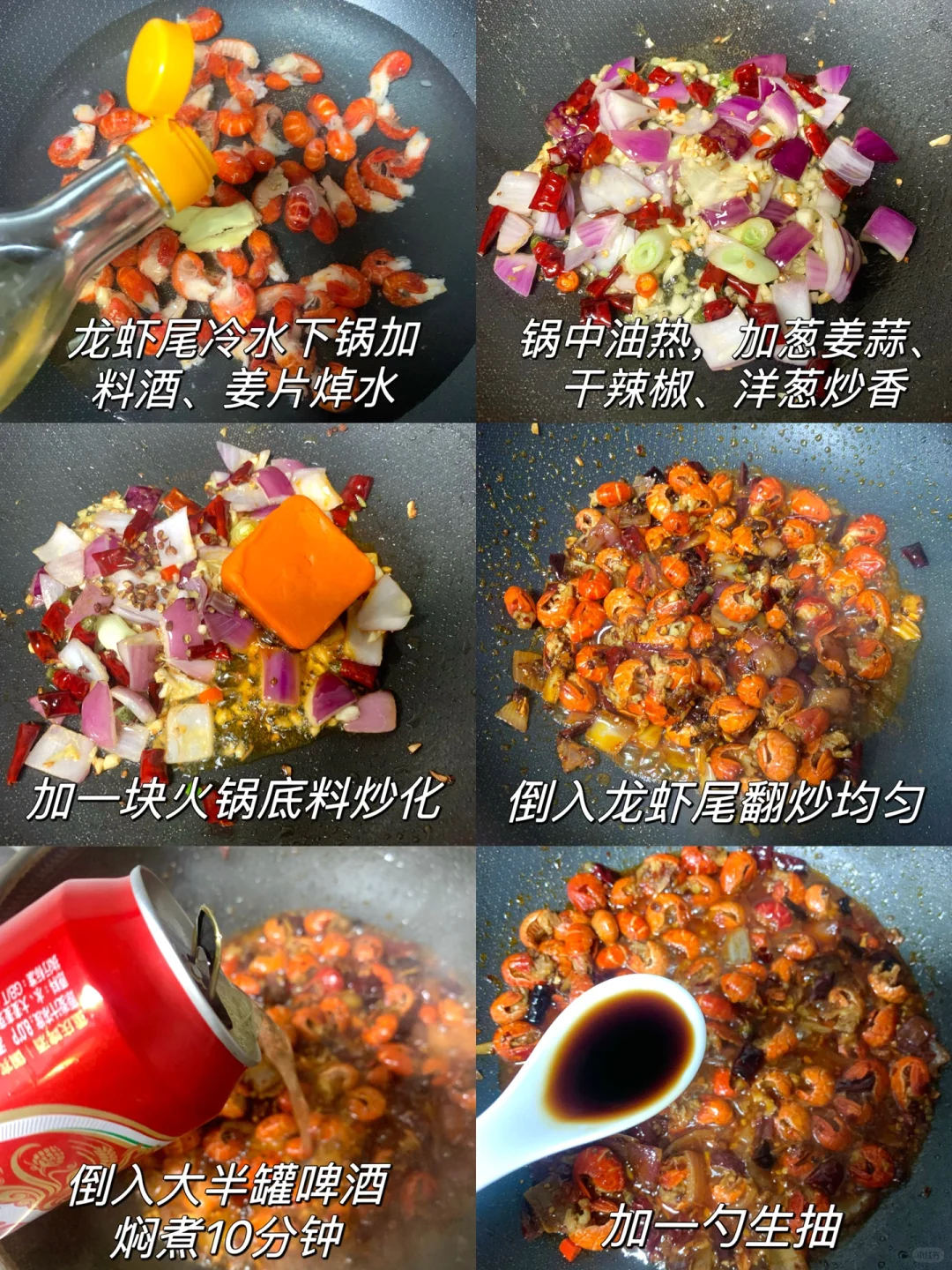 想吃小龙虾又怕麻烦的姐妹一定要试试这道麻辣虾尾‼️超入味超好吃,一盘都不够我炫🤣做法很简单 食材:龙虾尾、火锅底料、罐装啤酒、葱姜蒜、洋葱、干辣椒、线椒、小米辣 做法: 一、龙虾尾冷水下锅加姜片料酒焯水捞出,起锅烧油加葱姜蒜、干辣椒、花椒、洋葱炒香,加入一块火锅底料炒化,倒入龙虾尾翻炒均匀 二、加入大半罐啤酒焖煮10分钟,再加一勺生抽、一勺白糖、一勺耗油,加入青红辣椒段翻炒均匀,最后撒上香菜即可 [彩虹R][彩虹R]答应我!一定要试试!这么做味道真的不输饭店!