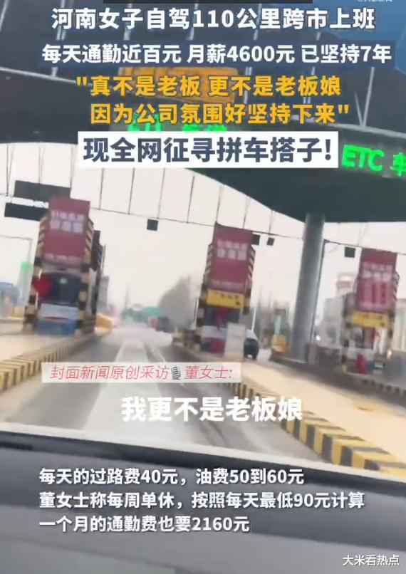 河南一女子自曝每天自驾220公里跨市上班,月薪4600元,交通成本直逼3000元。