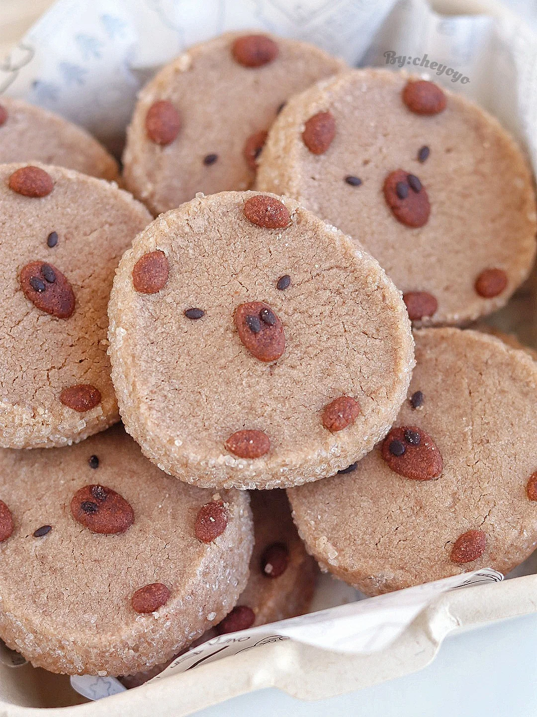 1⃣️ 室温软化的黄油加糖粉、盐搅拌至顺滑均匀,筛入低筋面粉、可可粉A,翻拌均匀后整理成团;