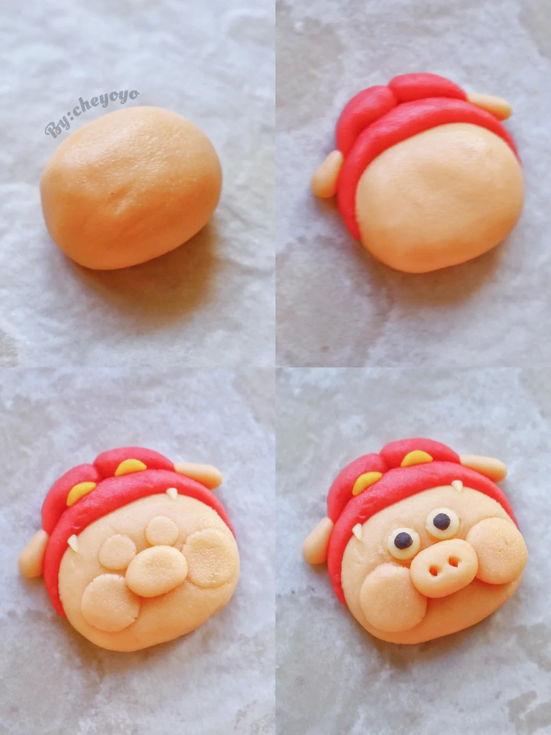 🔹脸:红曲粉+南瓜粉