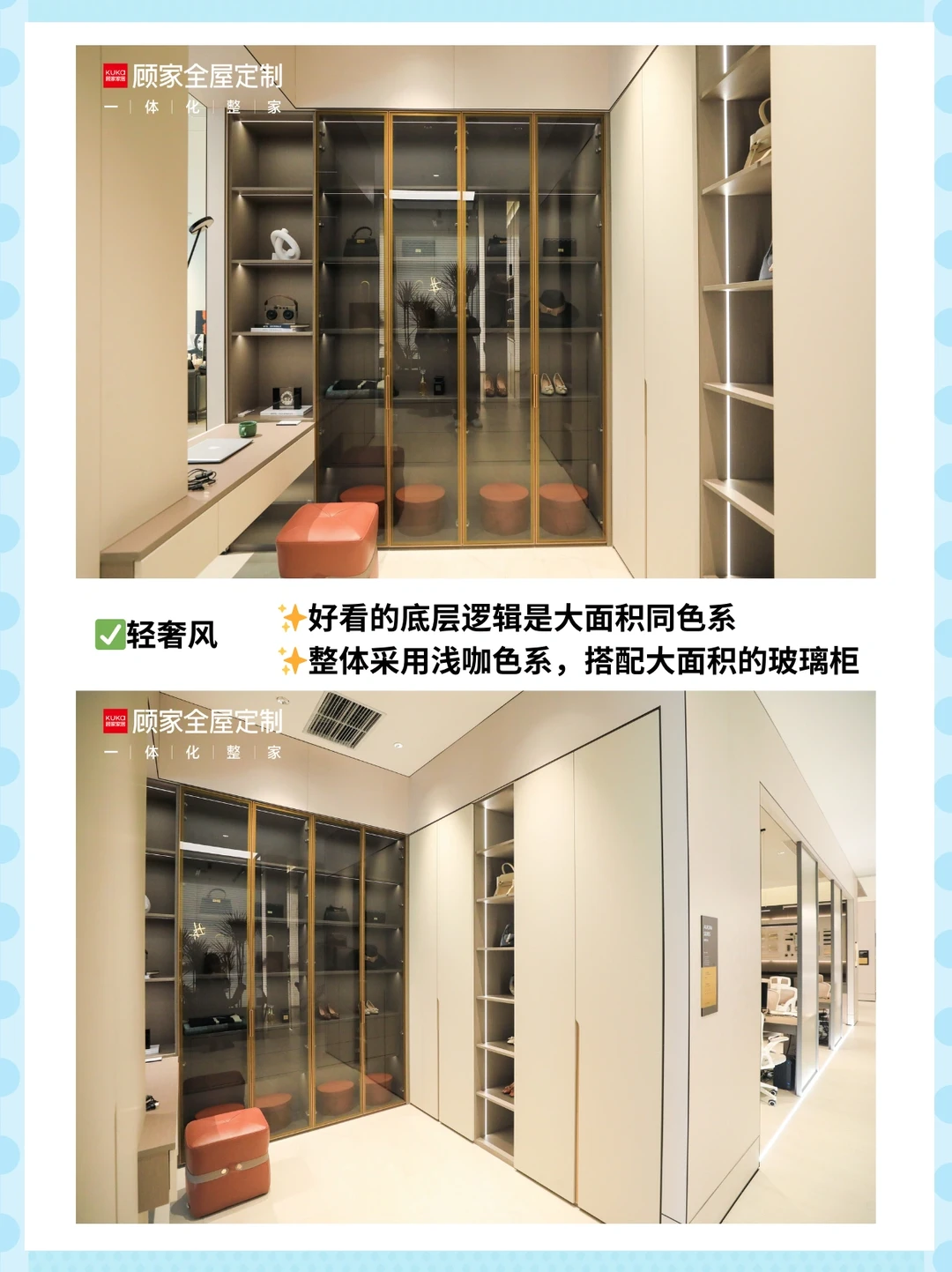 柜门和柜身有十几种花色,风格什么完全能hold住,最主要的驻店设计师,一对一的服务,按照家里的户型给到方案,整个过程都是顾家门店在沟通,对接起来很方便,即便有售后问题解决起来也更加简单