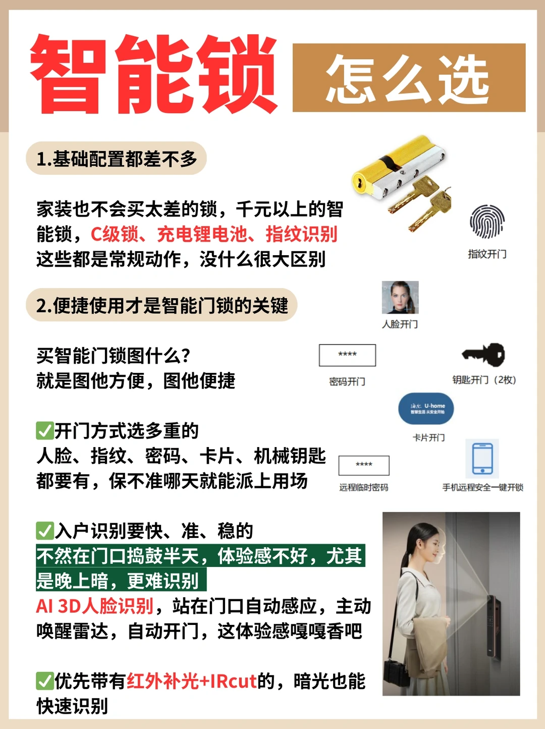 家装也不会买太差的锁,千元以上的智能锁,C级锁、充电锂电池、指纹识别这些都是常规动作,没什么很大区别