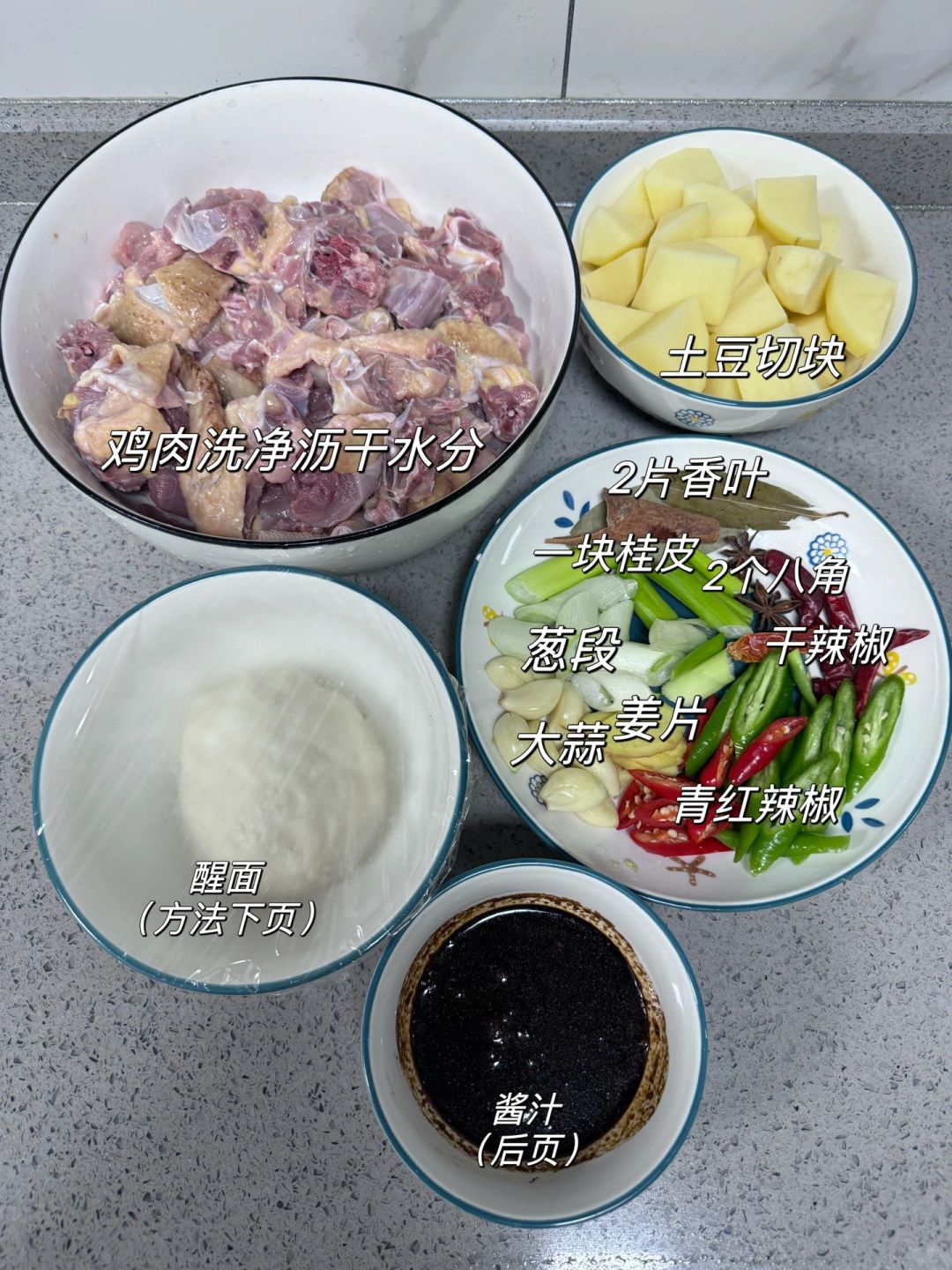 [放大镜R]食材:鸡肉、土豆、面粉、八角、香叶、桂皮、姜片、葱段、干辣椒