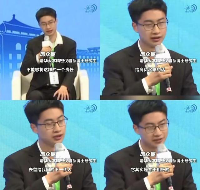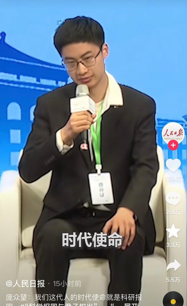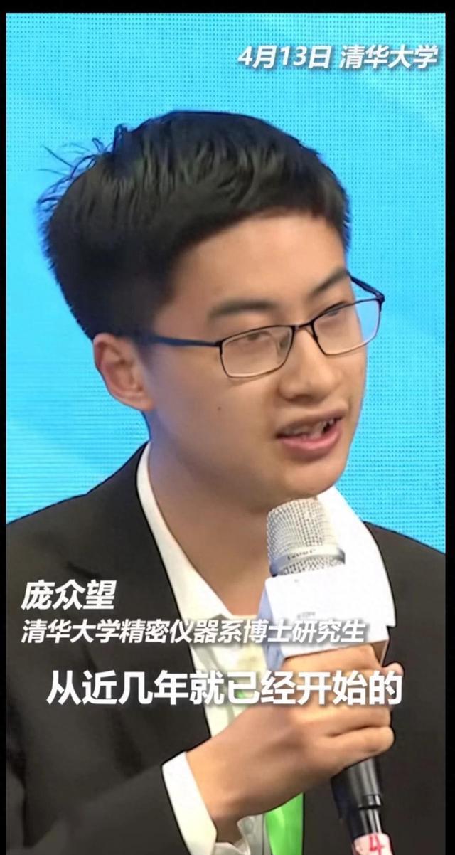 而看到庞众望当下还以优秀学生代表的身份,参加清华大学的对谈会,并且人民日报还转发了他的视频。