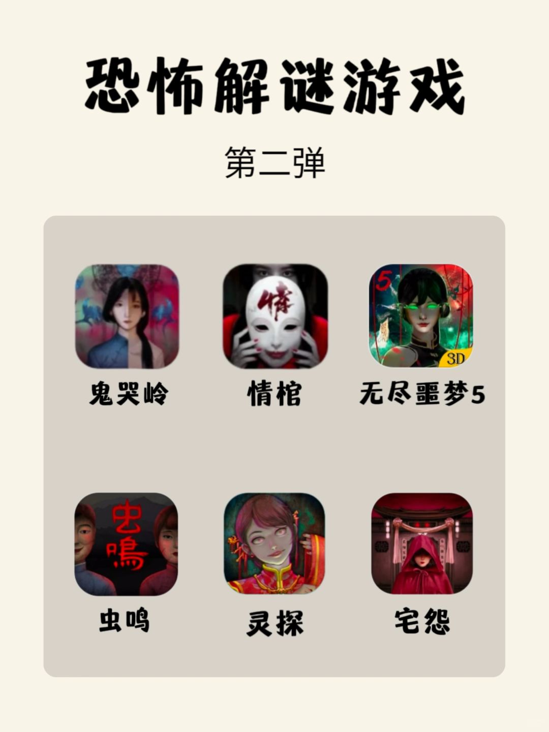 嗨!姐妹,今天分享18款恐怖解谜游戏,所有游戏都可以在安卓和ios玩! – 1⃣️奉天白事铺 2⃣️洞娘 3⃣️古镜记 4⃣️引魂铃2 5⃣️点灯 6⃣️点灯2 7⃣️鬼哭岭 8⃣️情棺 9⃣️无尽噩梦5 🔟虫鸣 1⃣️1⃣️灵探 1⃣️2⃣️宅怨 1⃣️3⃣️阴阳锅2 1⃣️4⃣️戏怨 1⃣️5⃣️双生怨 1⃣️6⃣️无尽噩梦1 1⃣️7⃣️孙美琪 1⃣️8⃣️山村老屋1 –