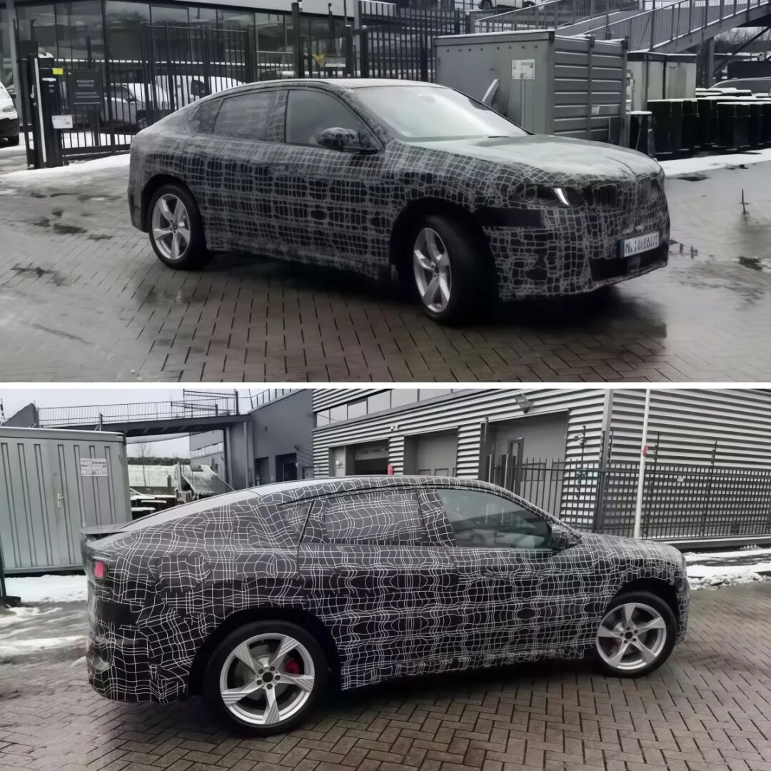 从谍照来看,其前脸延续了iX3的家族特征,车顶线条从B柱开始急速下坠,后三角窗面积明显缩小,构成了标准的轿跑轮廓;车身姿态相比上一代X4更加低趴,外扩的翼子板增强了肌肉感,整体视觉效果更具攻击性。尾门扰流板上的横向开口可能用于安置高位刹车灯,这一设计与宝马以往风格有所不同。