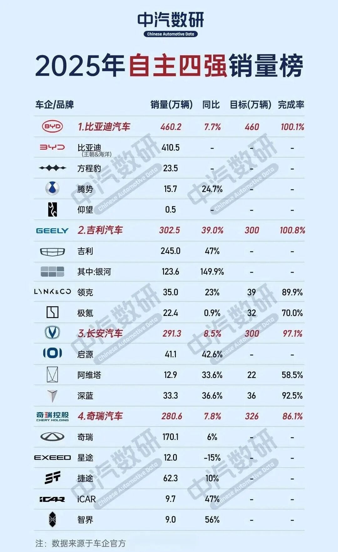 1.2025自主四强全年销量成绩单出炉