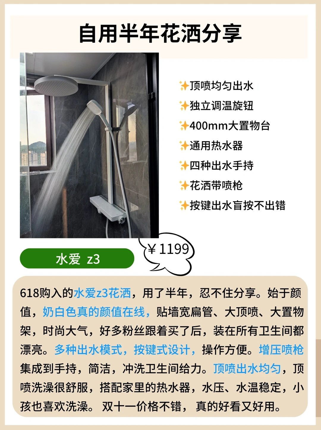 🌿618期间购入的水爱z3花洒,用了半年,忍不住分享