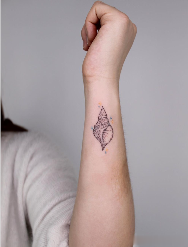 如果您没有找到适合您的美人鱼纹身,小贝壳也可以代表您对这种生物的热爱,作为小美人鱼纹身。
