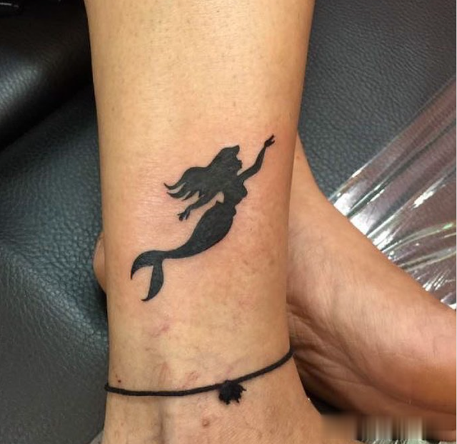 对于永恒的设计,可以尝试像爱丽儿公主剪影的“小美人鱼”纹身这样的纹身