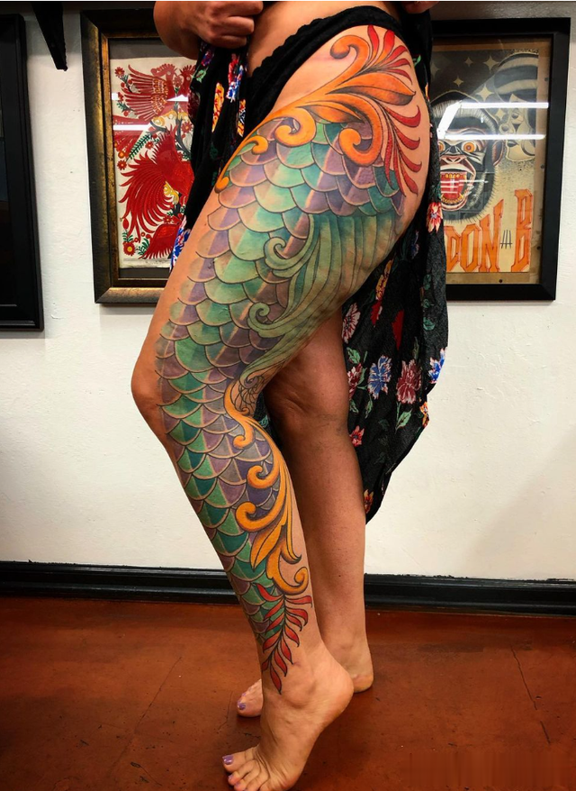 如果你想要不同的方式,为什么不自己成为美人鱼呢?这些色彩缤纷的美人鱼鳞片构成了如此令人惊叹的纹身。
