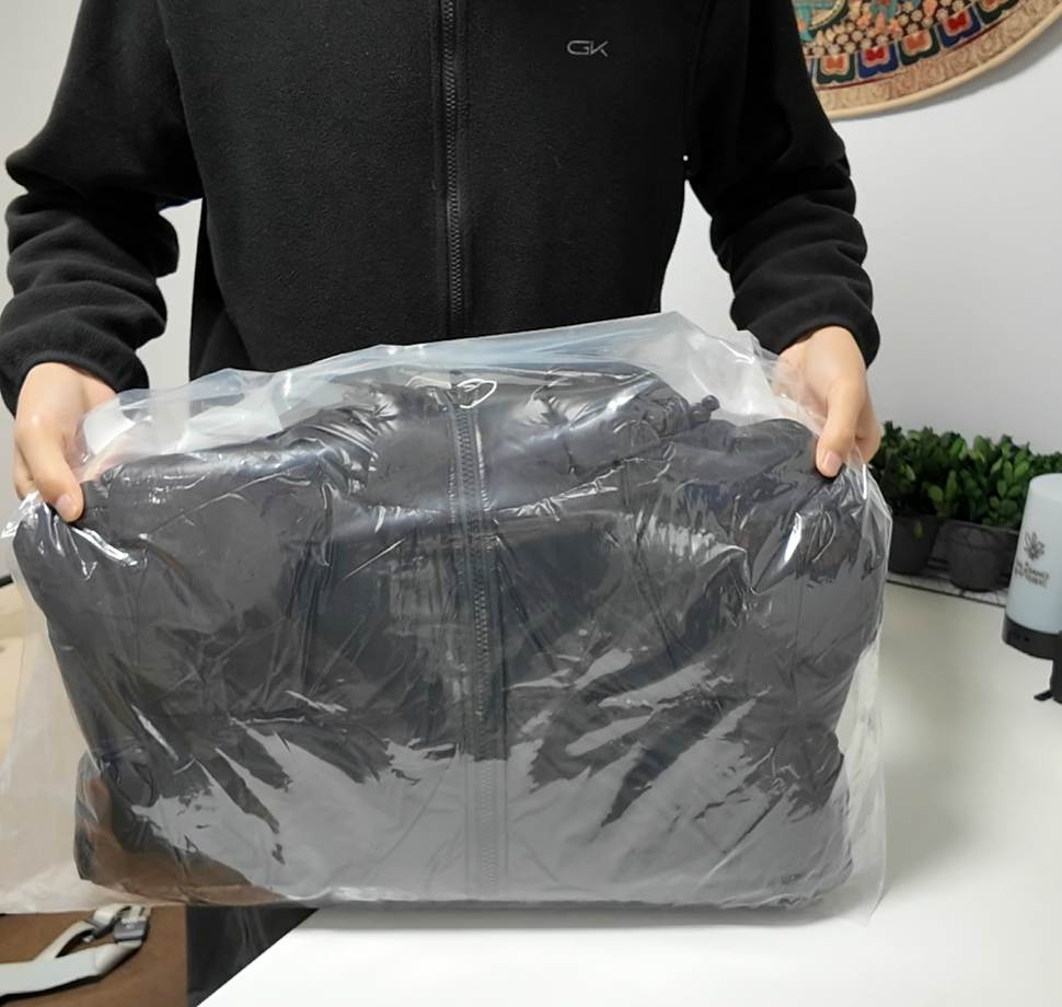 采用 “揉搓拍打测试”,抓住羽绒服衣角用力揉搓 5 分钟,再对准接缝处反复拍打 3 分钟,抖动观察是否有绒毛掉落。测试仔细检查所有接缝处和面料表面,均未发现钻绒现象。这得益于五星级无缝防钻绒技术与高密度双层防钻绒膜的双重防护,针脚采用超细密缝制工艺,避免了针孔漏绒的问题,同时双层防钻绒膜将羽绒牢牢锁定在内部,即便大力揉搓,羽绒也不会从任何缝隙中钻出。