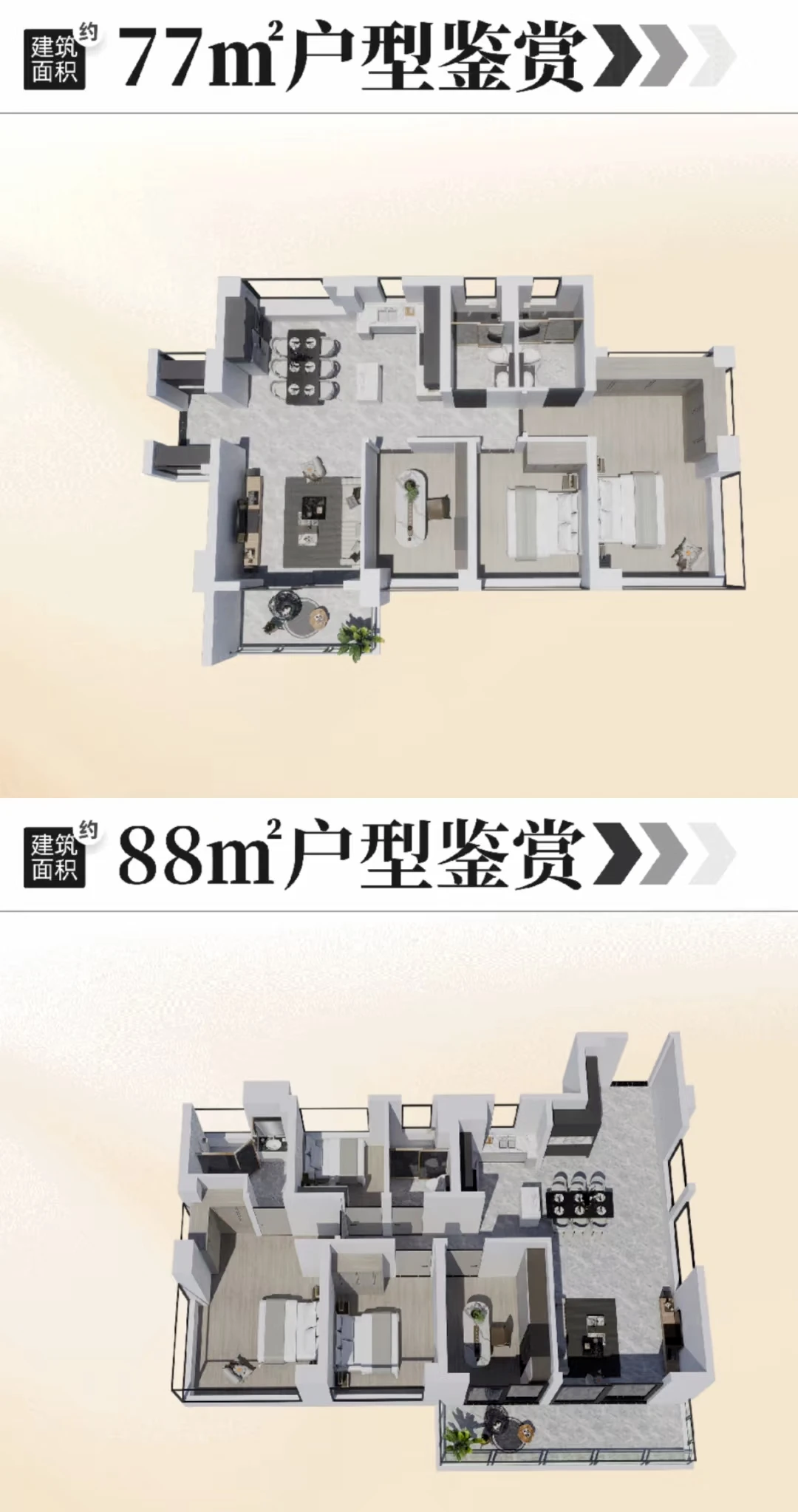 加推的新规有77平刚需户型,使用率去到136%,堪比旧规的103平户型,总价300-320万,还有92平总价330-380万,110平总价410-490万。