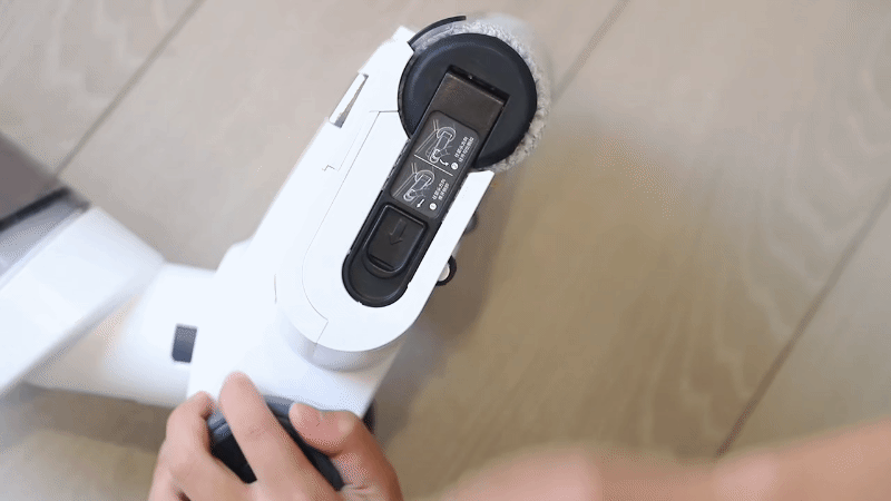 西屋洗地机自重相对就比较轻盈,加上底部两个大的软胶轮和两个小轮,配合滚刷旋转助力,清扫时一点也不费劲。