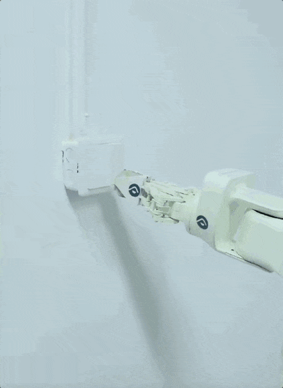 末端执行器为夹爪,重复精度±0.05mm,可执行插拔电源,开啤酒,扭动旋钮等精细操作;力控精度±0.1N,可避免抓取易碎物品时用力过大的问题。