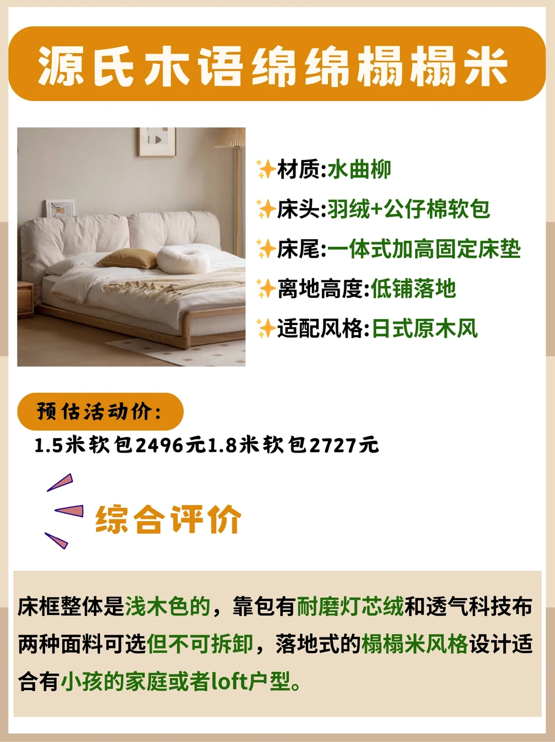 床框整体是浅木色,靠包有耐磨灯芯绒和透气科技布两种面料可选但不可拆卸,落地式的榻榻米风格设计适合有小孩的家庭或者loft户型