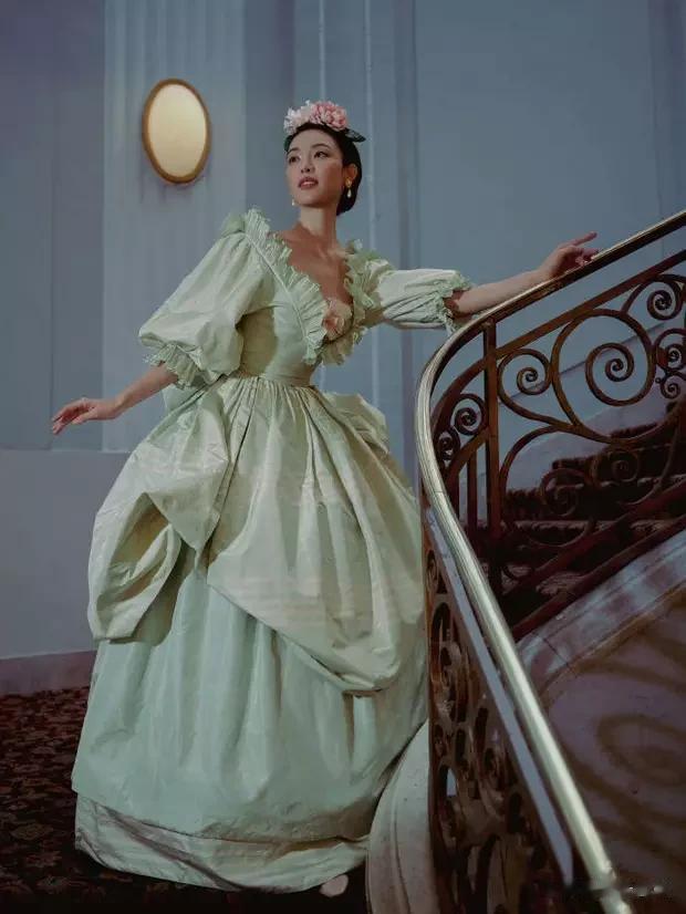 9画面中的钟楚曦,身着华丽的古典服饰,每一处细节都彰显着中世纪的独特韵味。那精致的裙摆,仿佛是流动的云朵,轻盈而飘逸;那细腻的蕾丝花边,如同夜空中闪烁的繁星,点缀出无尽的奢华与高贵。她的一举一动,都仿佛带着中世纪的韵律,优雅松弛又自带聚光灯,仿佛整个世界都围绕着她旋转。
