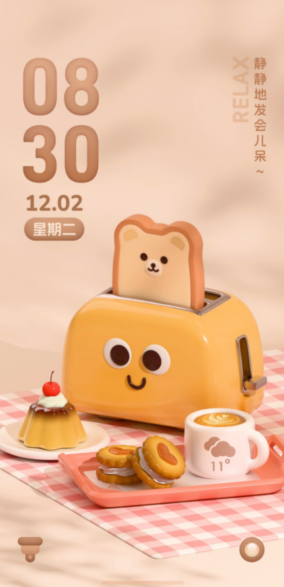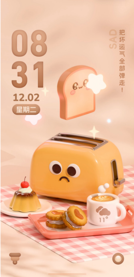 而当我只想安静发呆时,它也不会强行打扰,点击它,它就只是静静地切换成不同形状的吐司,默默陪着我度过平静时光。