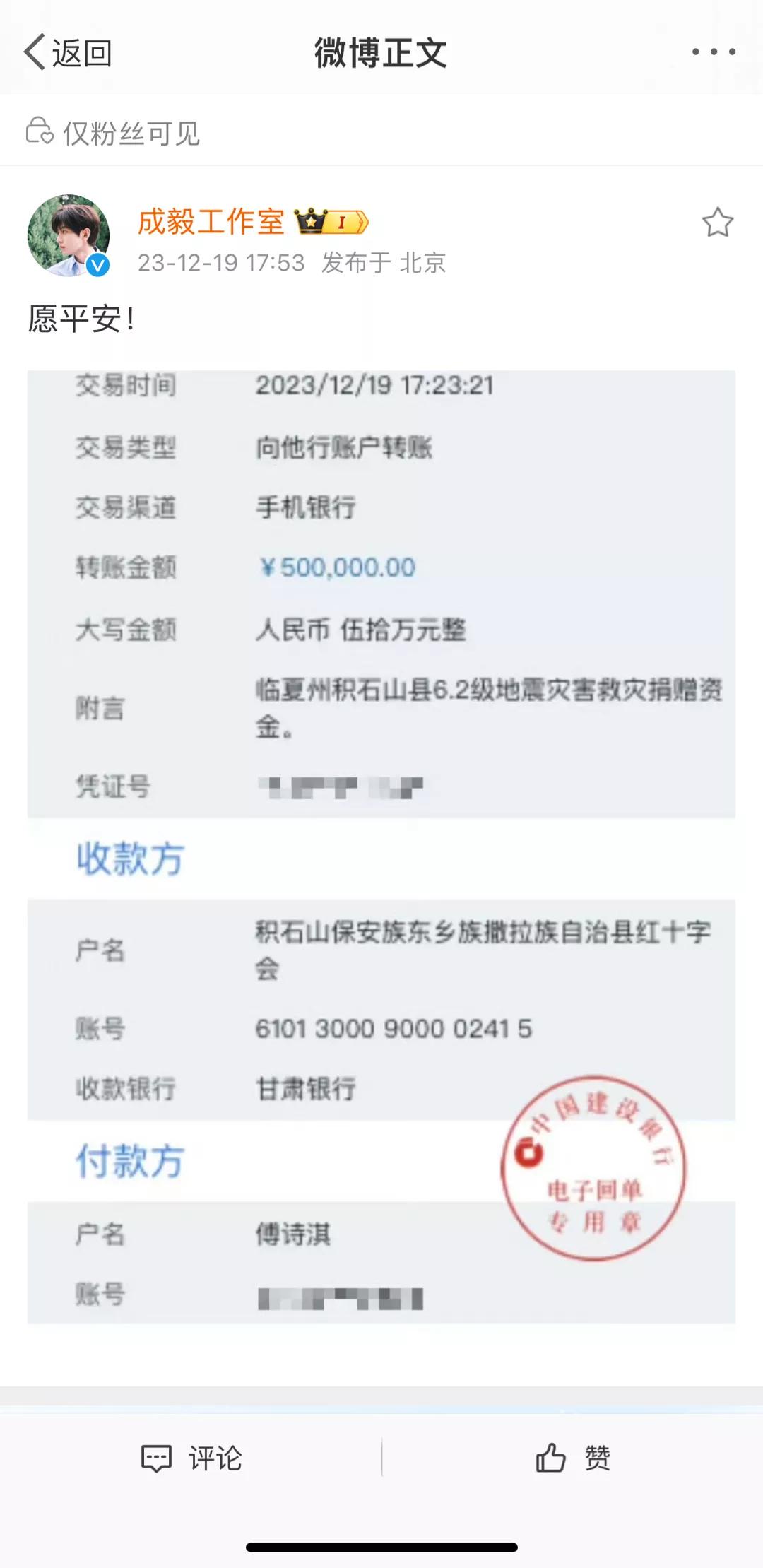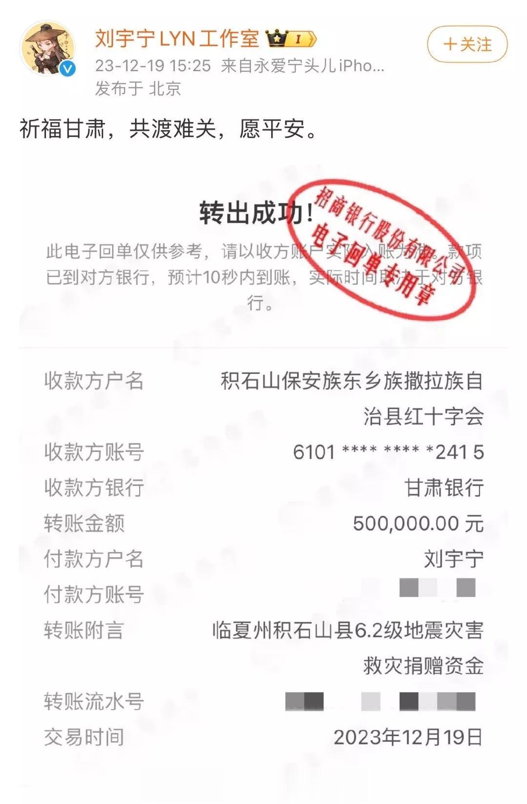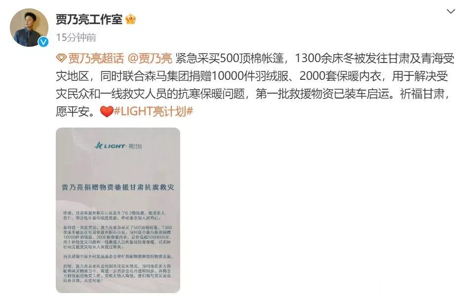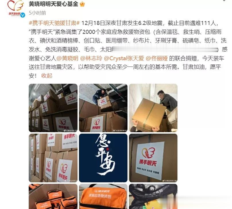 最高的捐了12000000。 甘肃地震发生后,多位艺人明星向甘肃地震灾区进行捐赠。 第一批 为甘肃捐款的艺人 赵丽颖、肖战、赵露思、黄晓明、林志玲、张天爱、佟丽娅、黄圣依、印小天等人。 感谢他们的善举。 #明星捐款甘肃# #艺人捐赠#