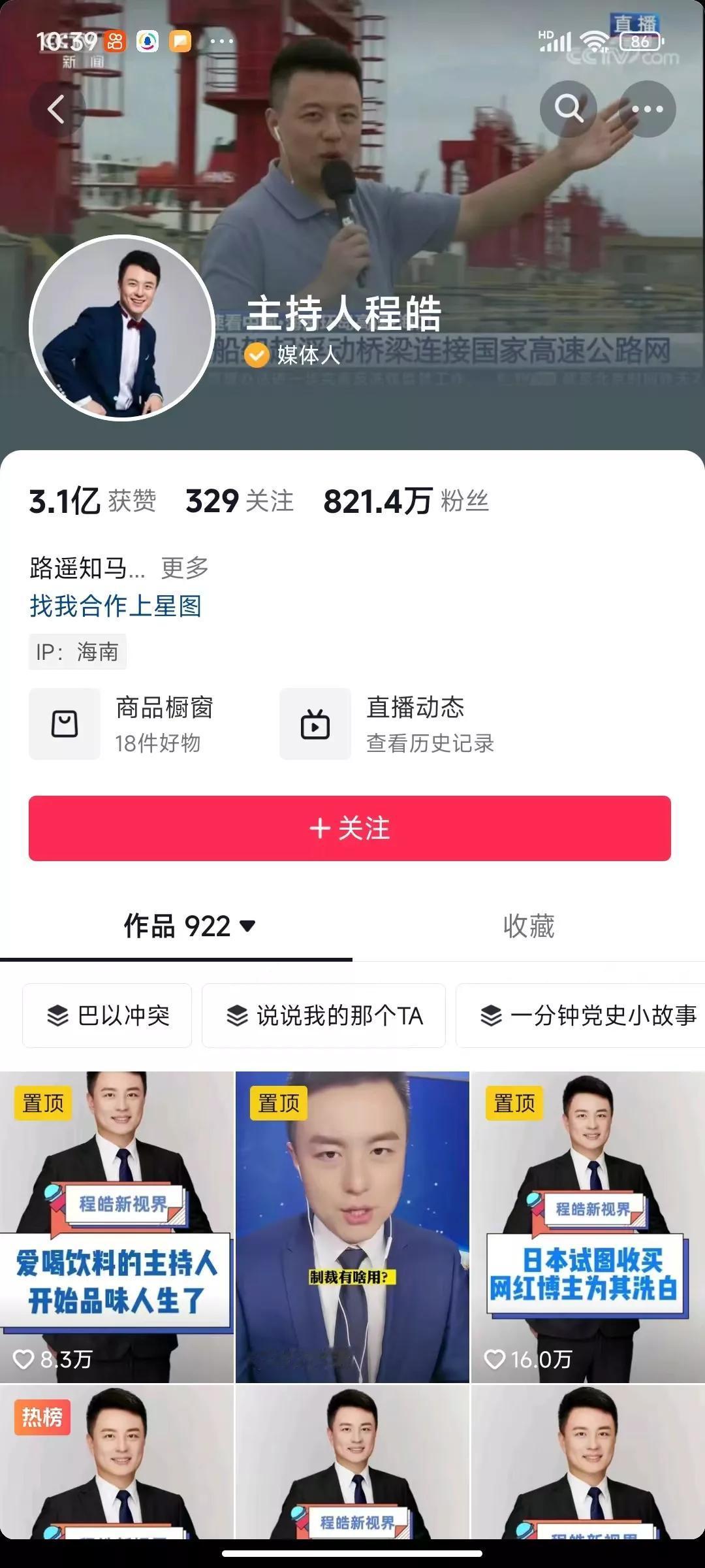 程皓终于可以出来变现了…他已经开始行动了… 既收割了流量,粉丝量也如同火箭的速度噌噌的增长,仅仅是用了3、4天的时间,从不当言论之前的60多万,到此时的820万多,10多倍的增长,这是多少自媒体人难以企及的增速,一年也很难达到这样的量级! 从截图看,程皓已经开始行动了,1月4号下午,程皓连发了3条视频,从点赞量个评论数量可以看出,仅仅这3条视频就已经收获满满了,而这仅仅是开始,粉丝量还在持续增长,好戏还在后头。往后的日子,开始准备好箱子,准备往箱子里装胜利果实吧! 即使不再增加粉丝量,就目前的来看,光推送给粉丝而获得的收获就已经很可观了! 这要比在做主持人的时候舒服多了,不用到点上下班,自由自在,无论刮风下雨,道路拥堵,和他已经没有关系了,坐在家里就可以享受胜利的果实了! 没想到一次无心之举,竟然成就了程皓,正所谓塞翁失马焉知非福,仅仅几句话获得如此成就! 从某种程度上说,是海南电视台成就了程皓!